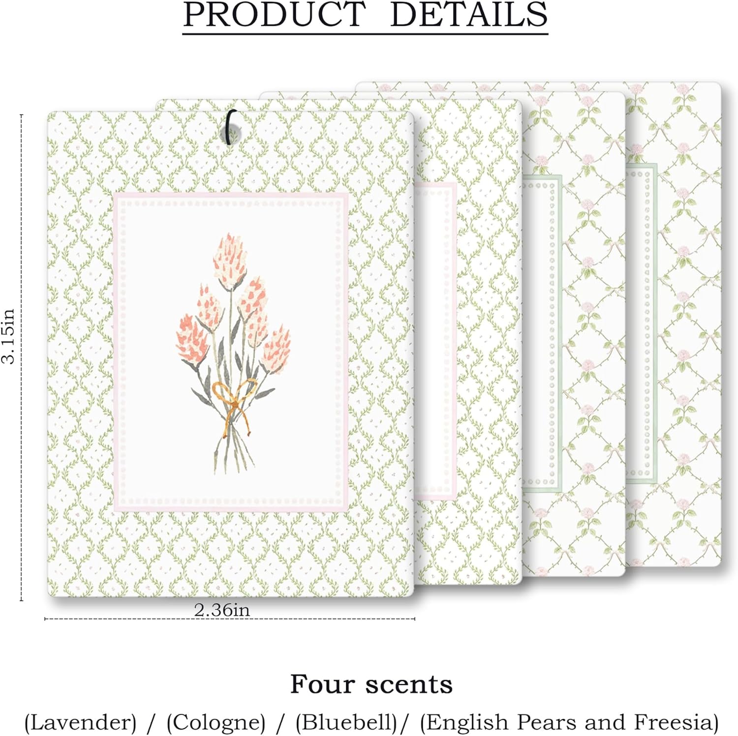 Elegant Rustic Floral Car Air Freshener 4 Pcs, Cottagecore Flower Hanging Scents Air Freshener for Women Girls Gifts, Pastel Leaf Floral Scented Car Accessories Decor for Room Closet Drawer