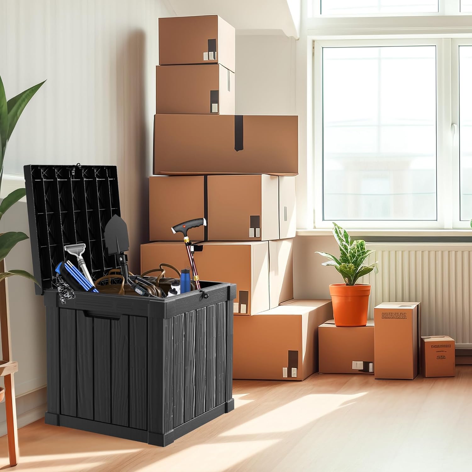 • TRANSFORM YOUR SPACE: Whether used indoors as a laundry storage solution or outdoors for patio items like cushions, garden tools, this patio storage box excels. Its multi-functional design makes it suitable as a side table, patio seat, storage bench, or footstool