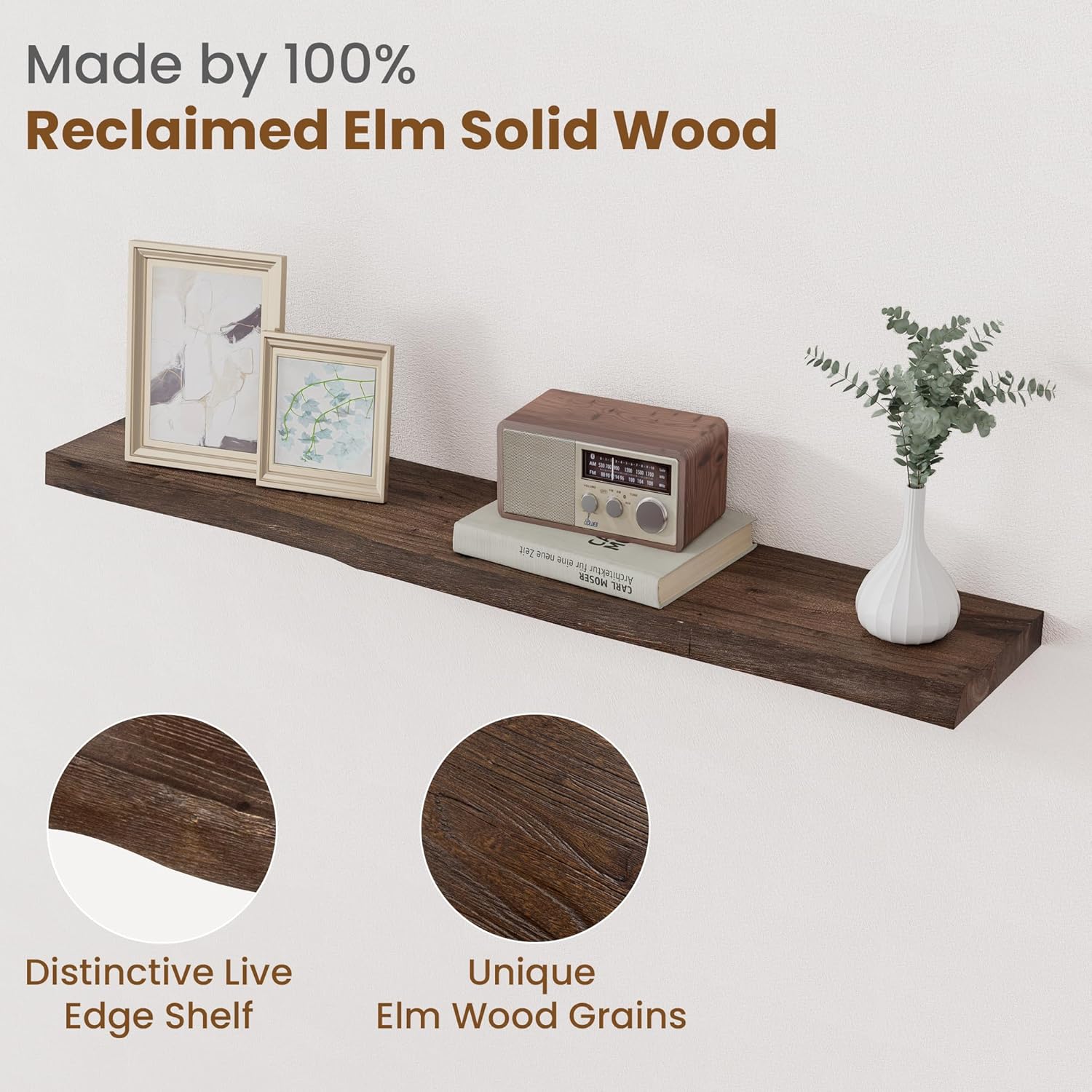 • Solid Elm Wood: Our rustic live edge floating shelves are made of reclaimed elm wood, each floating shelf has a unique natural grain, color, holes, and knots. Don't worry about holes and knots, these are elm itself so you can feel the feeling of nature