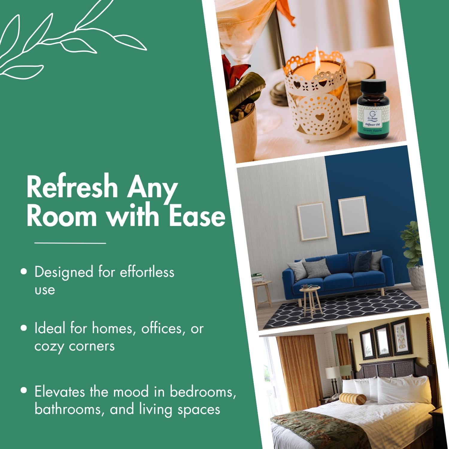 G's Breeze Green Apple Diffuser Oil Refill - Scent of Crisp Apple Fruit - Transform Any Space with Invigorating Fragrance – Ideal for Home & Office – Long-Lasting Freshness Aroma - 60 ML