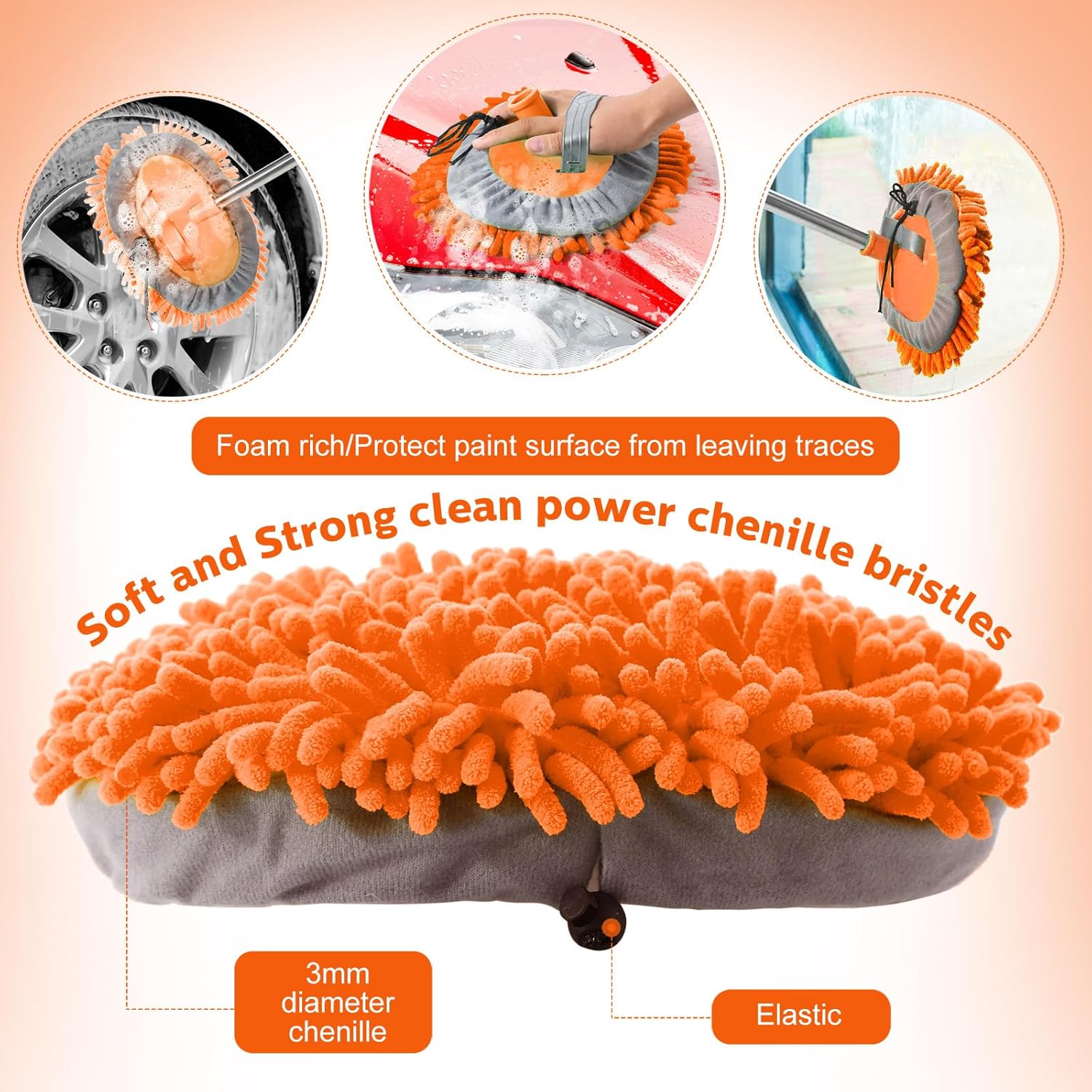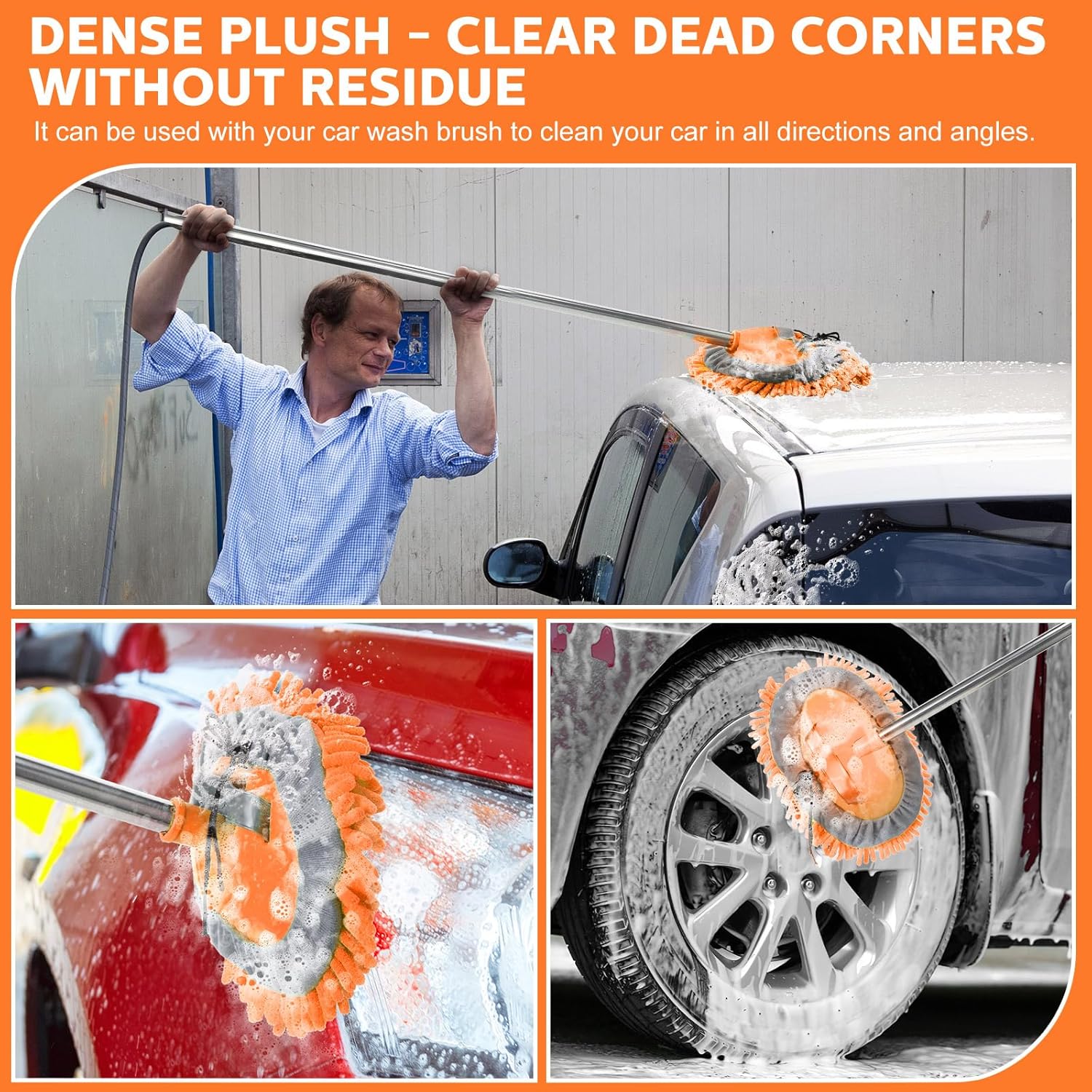 • Efficient Car Cleaning Solution: keep your car's finish looking nice with our microfiber car wash brush; The chenille scratch proof replacement heads securely attach to your mop handle to effectively but gently clean off dirt, dust, and debris from your vehicle's surface, preserving your car's paintwork