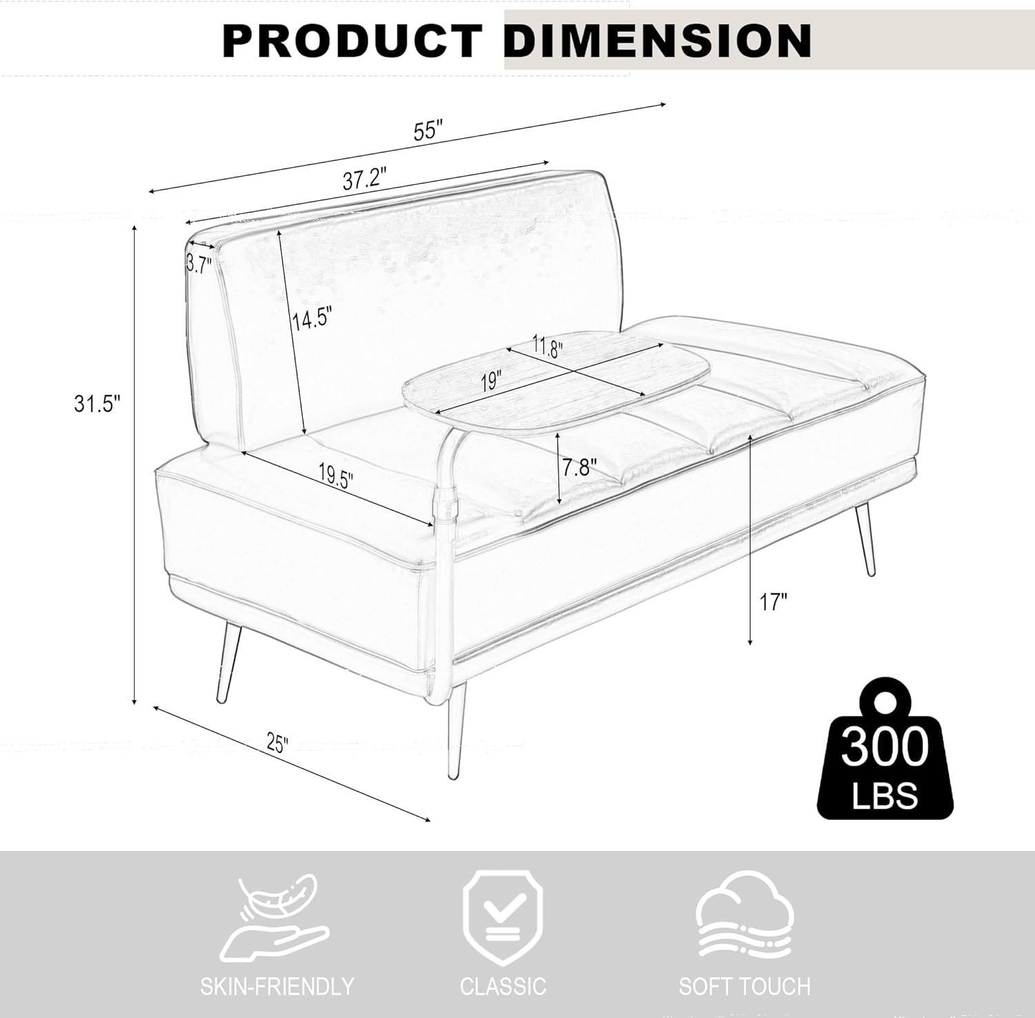 Sofa,Bed Bench,Small Spaces Furniture,Polyurethane Leather,Wood Frame,High Density Sponge Infillings,360-Degree Swivel Tray,Black Metal Leg (Beige)