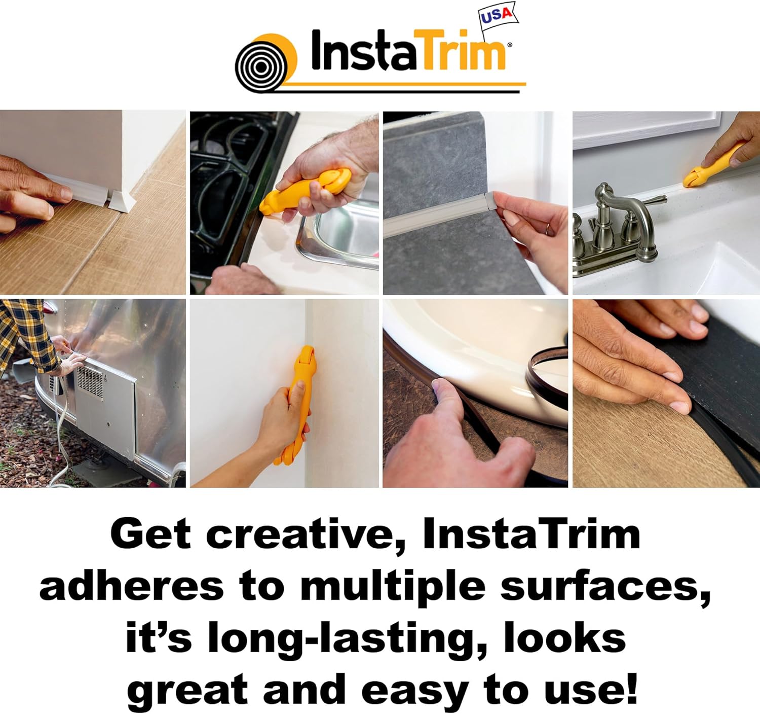 • Flexible, Durable Seal for Any Surface: InstaTrim’s caulk trim is flexible enough to conform to any edge or surface, providing a smooth, professional look around sinks, tubs, countertops, and more. Ideal for filling gaps and edges without the hassle of messy caulking tools.