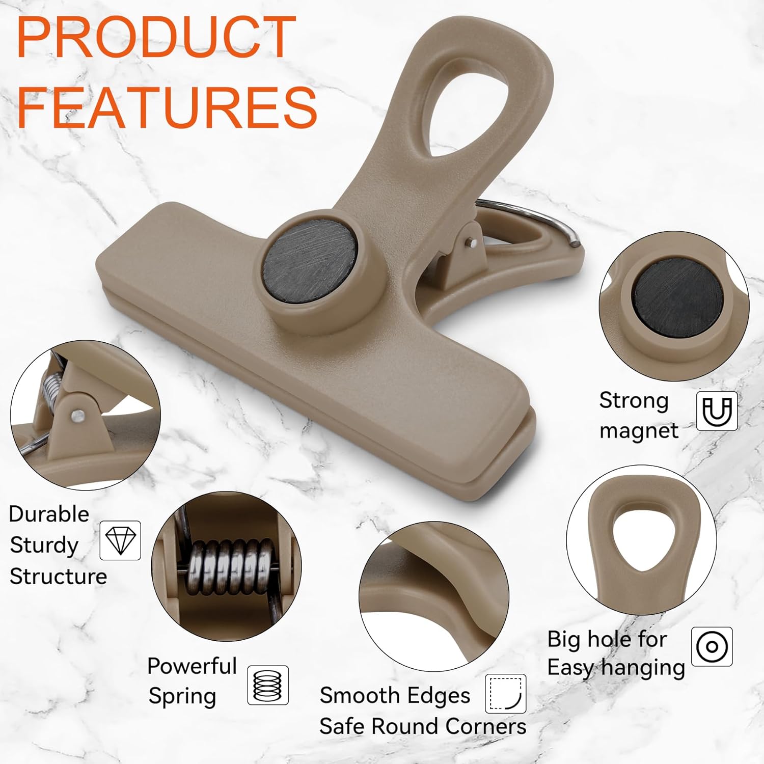 • 【Package Includes】8 pcs magnet bag clips (3.2" W x 2.6" L x 2" H) with 4 different Neutral colors
