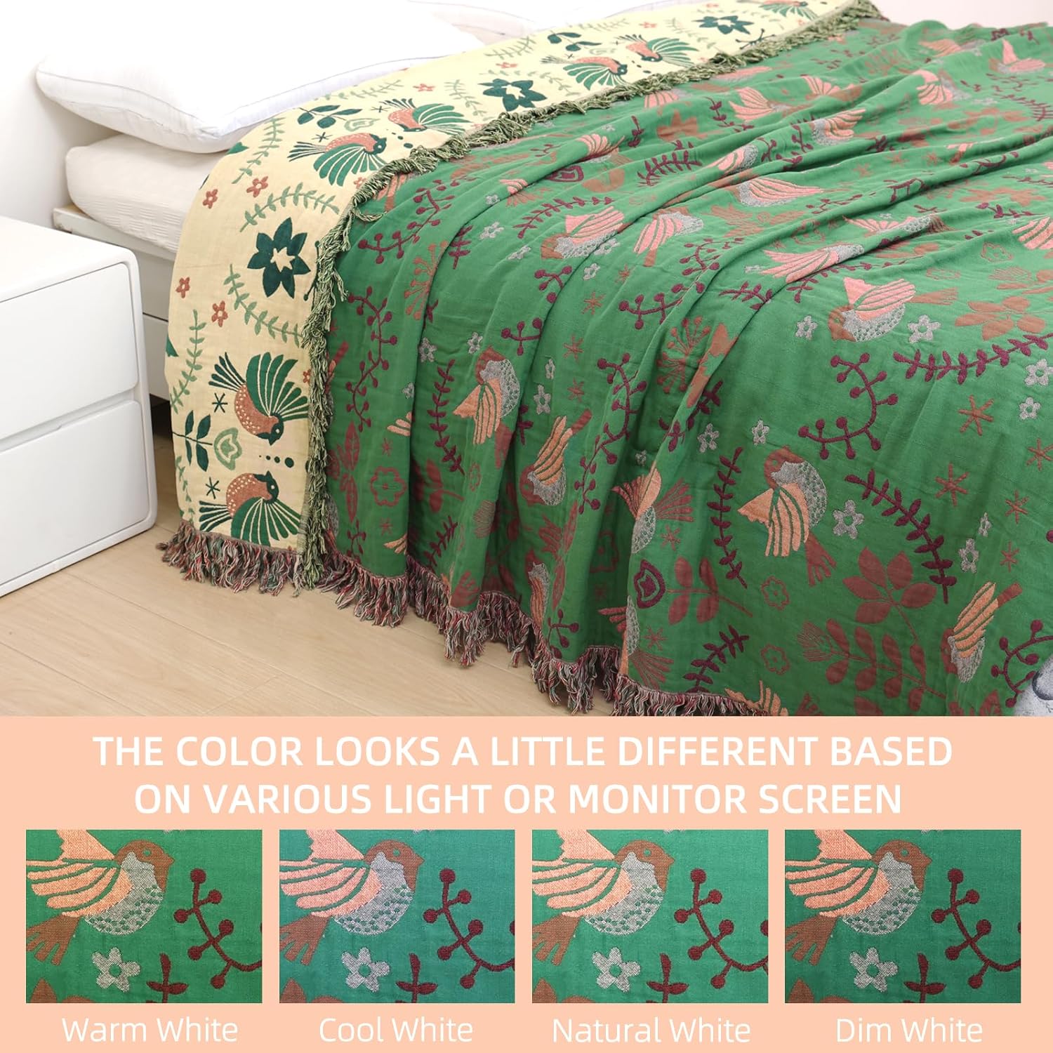 Boho Throw Blanket for Bed, 100% Pure Cotton Ultra Soft Rustic Quilt, Farmhouse Decor Bed Blankets, All Season Rustic Throw for Sofa Couch Chair(60"×80", Bird B)
