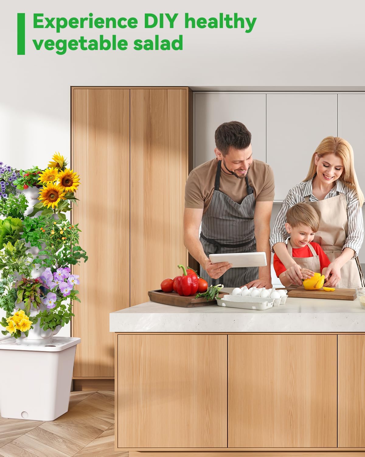 Vertical Hydroponics Growing System Kit, Indoor Outdoor Gardening System Kits, Herb & Fruits Growing Tower, 6 Layer 30 Pods