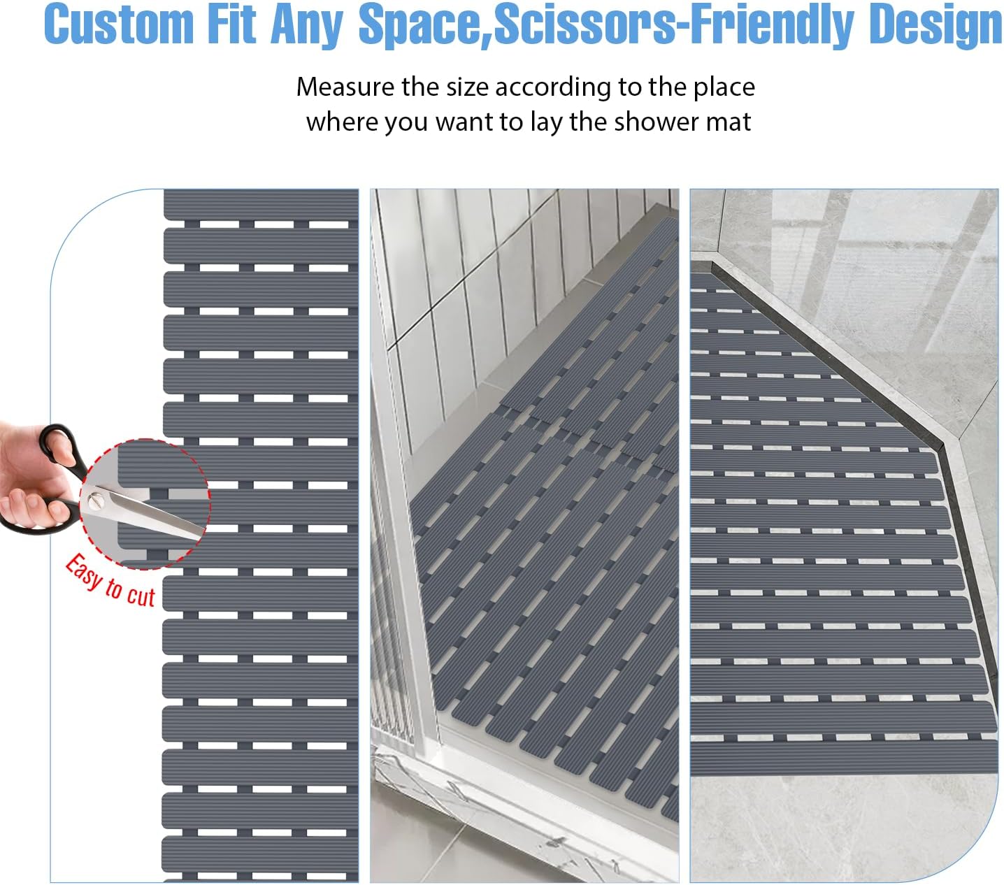 • Customizable Bath Mat: This shower mat square side length 24”, covering wide ranges and fitting most bathtubs and bathroom floors. Purchase multiple bathroom mats for broader coverage, or DIY cut to your preferred size for more compact areas.