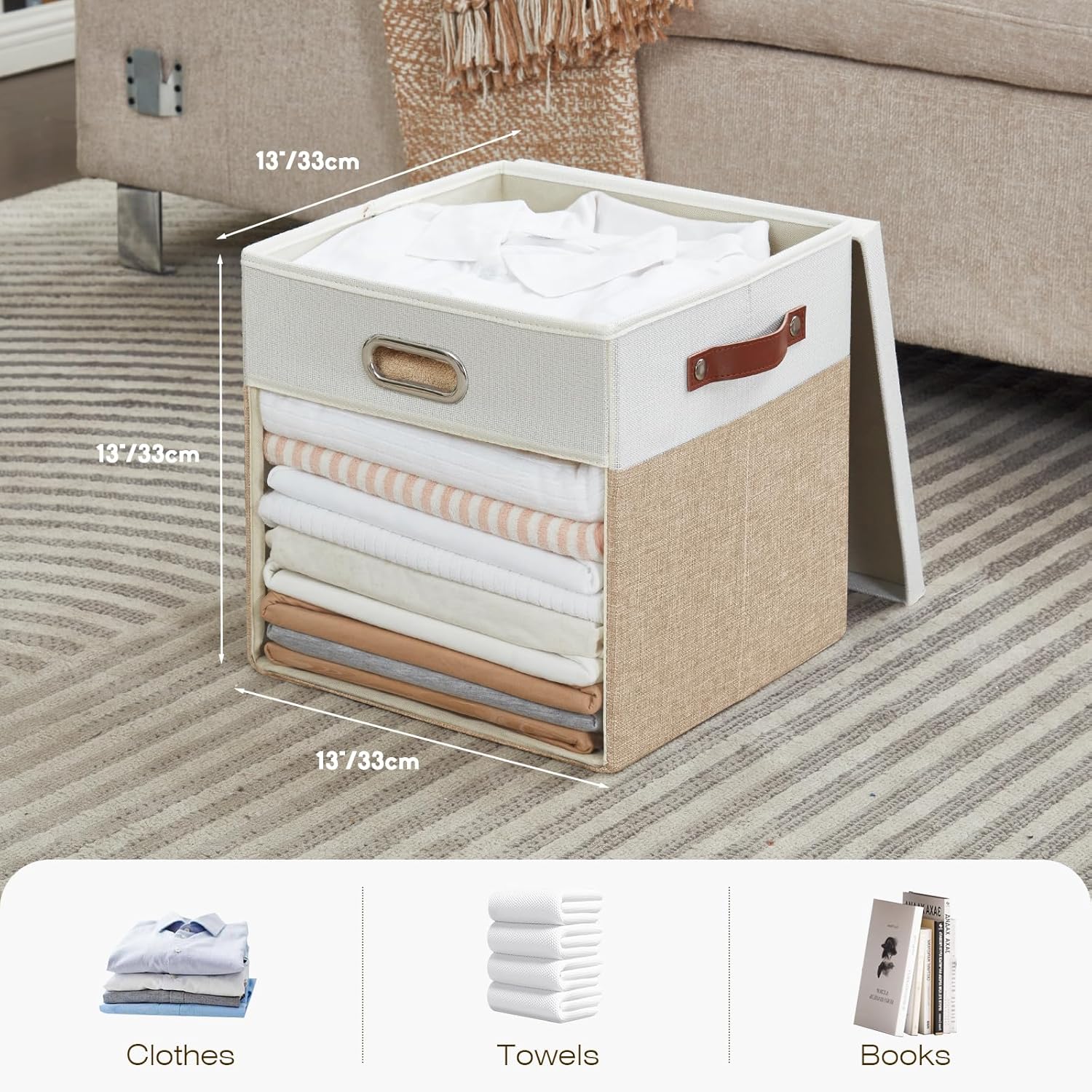 • Practical Design: The storage cubes with a lid size 13 x 13 x 13 inches (33 x 33 x 33 cm), which can perfectly organize closets, shelves, or children's rooms while keeping the space tidy and fashionable. The PVC clear window makes it effortless to identify the content at a glance, allowing you to easily find what you need!
