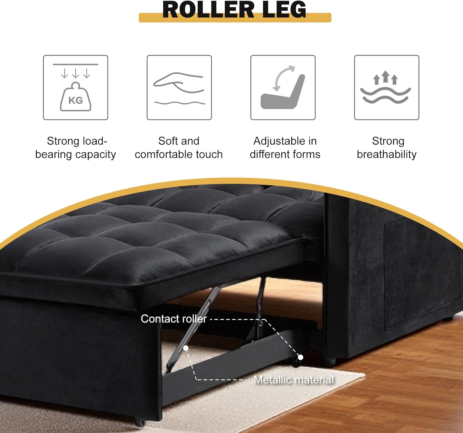• Luxurious Comfort: Upholstered in soft velvet fabric, this sleeper sofa couch with pullout bed offers a plush seating experience. The arms, seat cushions, and back cushions are elegantly wrapped with piping edges, ensuring both style and comfort for your living room or guest room