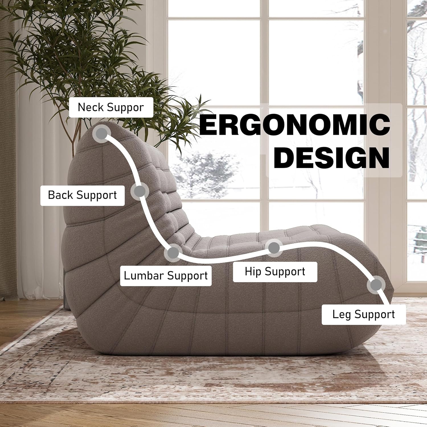 • 【Premium Fabric】- This loveseat lazy floor sofa is made from high-quality teddy velvet fabric, providing a soft, luxurious feel while ensuring excellent breathability. This fireside chair fabric is not only skin-friendly, durable but also easy to clean, keeping your bean bag looking fresh.