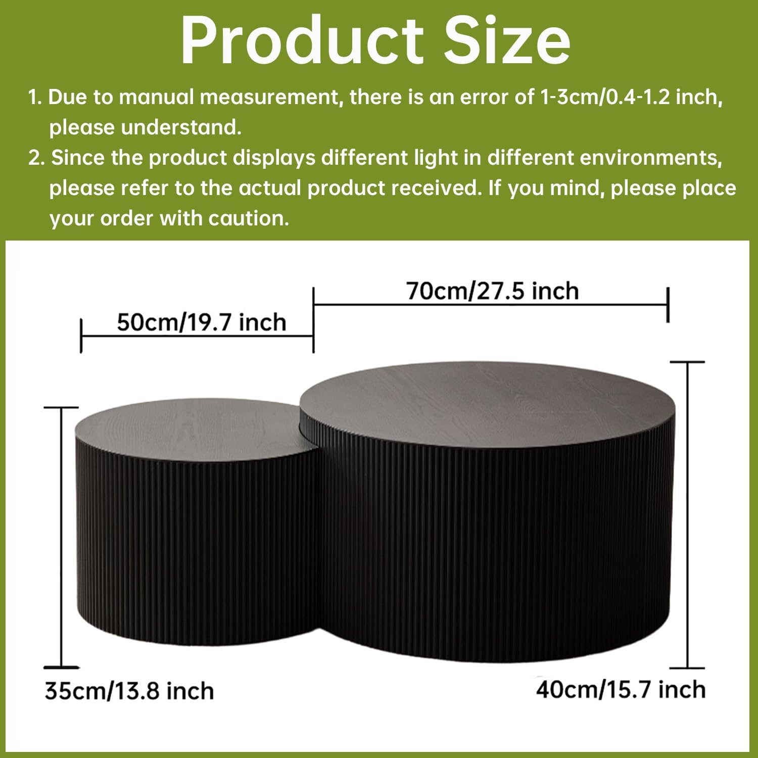 Round Nesting Coffee Table Set of 2 Small Round Coffee Tables for Living Room Modern Fluted Coffee Table Circular End Table Side Table for Small Spaces No Assembly (Black B, 27 in)