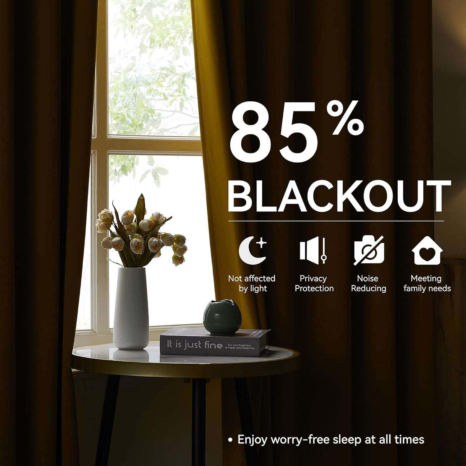 • Room Darkening & Thermal Insulated:Crafted to block out up to 85%–95% of sunlight, these blackout curtains help darken the room, reduce glare, and provide enhanced privacy—ideal for napping, movie nights, or light-sensitive settings. The thermal insulation offers excellent energy saving performance by keeping rooms warmer in winter and cooler in summer. These curtains also provide sound dampening benefits, helping to reduce outside noise for a more peaceful environment.