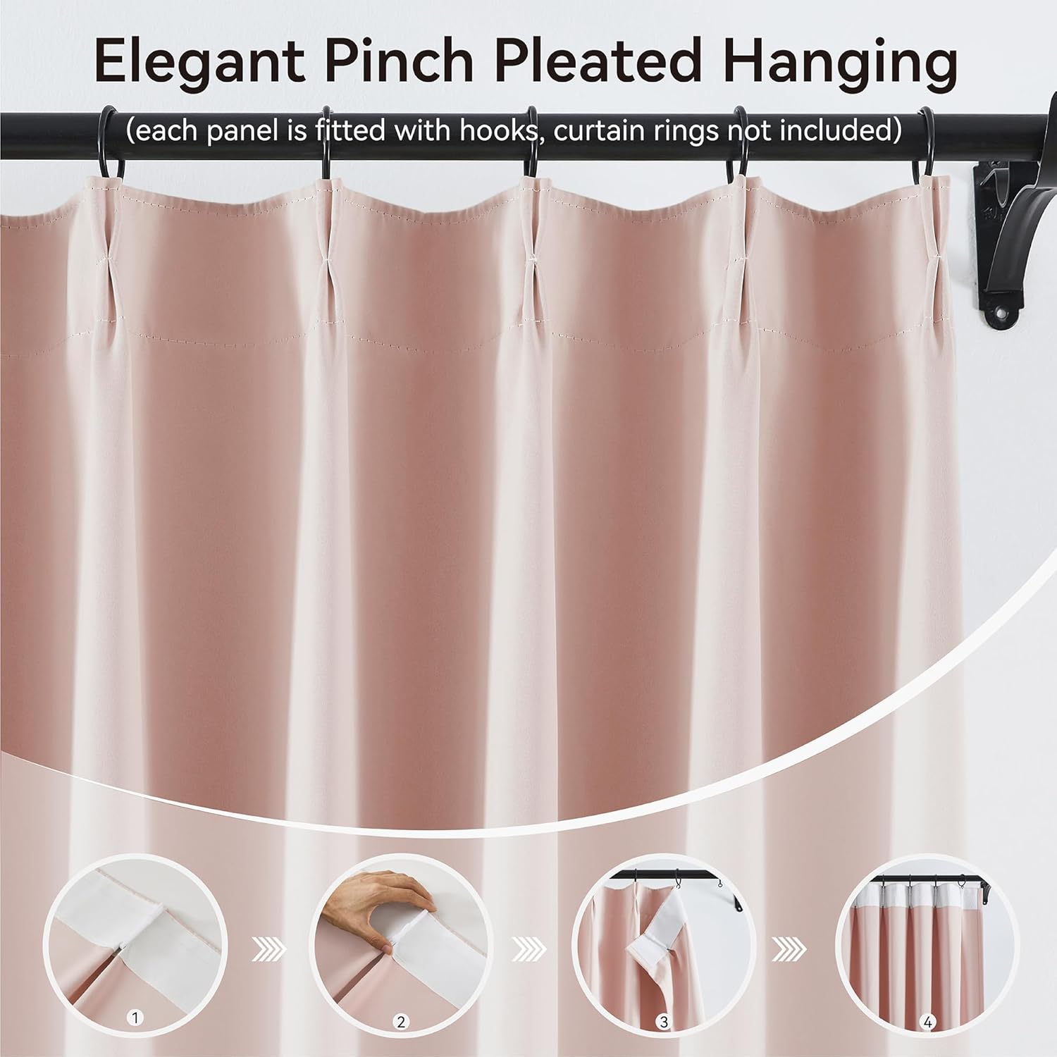 • Pinch Pleated Design:Classic pinch pleats create a clean, tailored look that adds elegance and depth to any space. These window treatments are ideal for both formal and modern interiors, offering a refined upgrade to your elegant modern decor. Perfect for living rooms, bedrooms, dining rooms, and offices, each curtain panel is heat-set and carefully draped to create a smooth, flowing appearance that makes any room look regal and upscale.