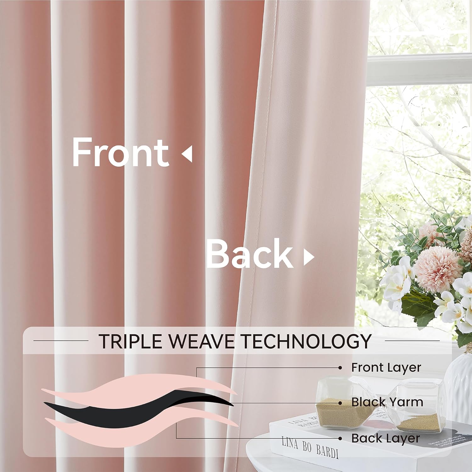 • Room Darkening & Thermal Insulated:Crafted to block out up to 85%–95% of sunlight, these blackout curtains help darken the room, reduce glare, and provide enhanced privacy—ideal for napping, movie nights, or light-sensitive settings. The thermal insulation offers excellent energy saving performance by keeping rooms warmer in winter and cooler in summer. These curtains also provide sound dampening benefits, helping to reduce outside noise for a more peaceful environment.