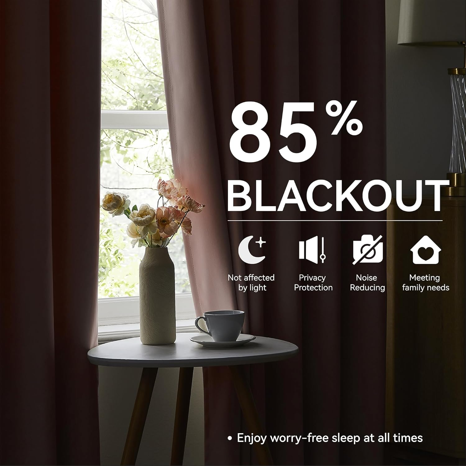 • Room Darkening & Thermal Insulated:Crafted to block out up to 85%–95% of sunlight, these blackout curtains help darken the room, reduce glare, and provide enhanced privacy—ideal for napping, movie nights, or light-sensitive settings. The thermal insulation offers excellent energy saving performance by keeping rooms warmer in winter and cooler in summer. These curtains also provide sound dampening benefits, helping to reduce outside noise for a more peaceful environment.