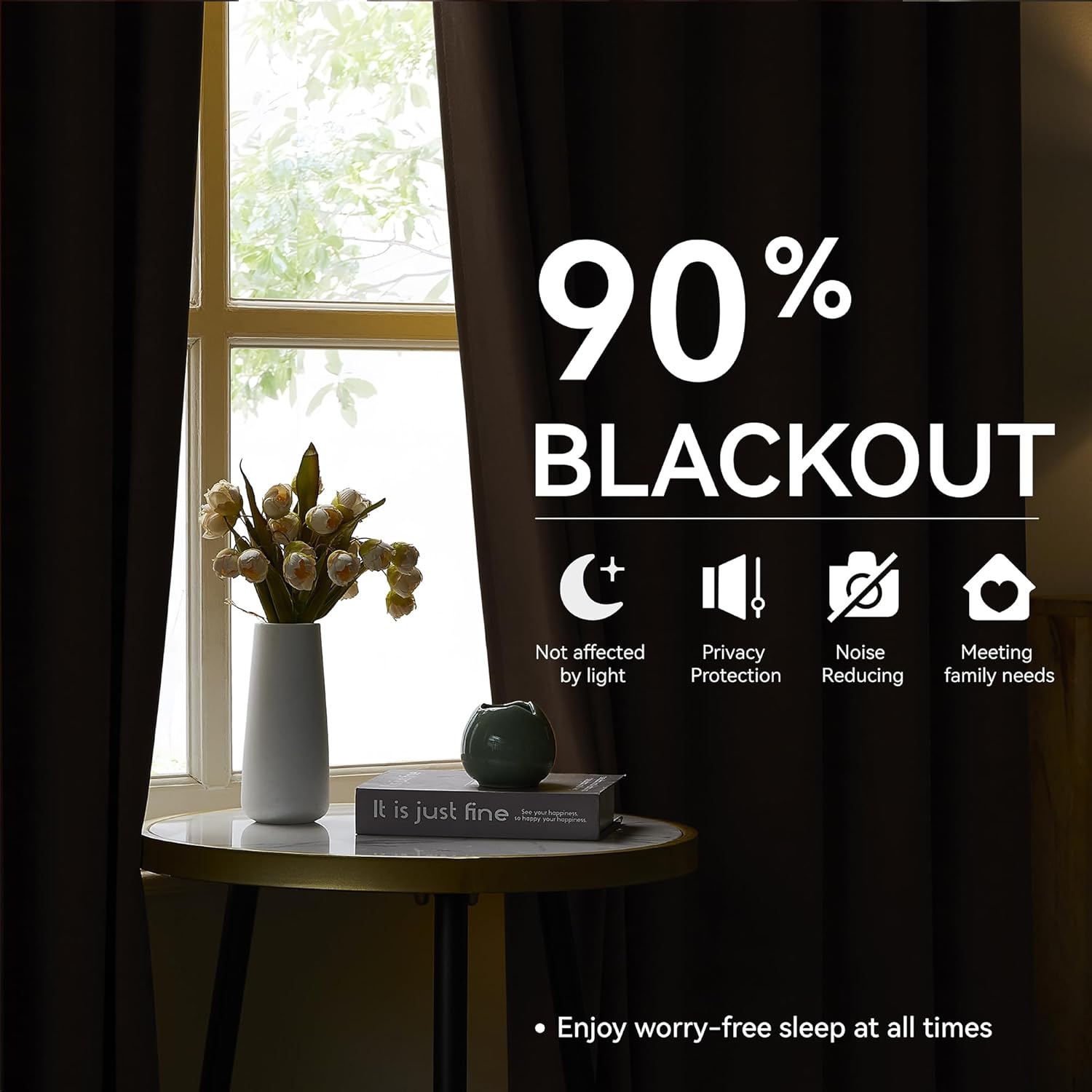 • Room Darkening & Thermal Insulated:Crafted to block out up to 85%–95% of sunlight, these blackout curtains help darken the room, reduce glare, and provide enhanced privacy—ideal for napping, movie nights, or light-sensitive settings. The thermal insulation offers excellent energy saving performance by keeping rooms warmer in winter and cooler in summer. These curtains also provide sound dampening benefits, helping to reduce outside noise for a more peaceful environment.