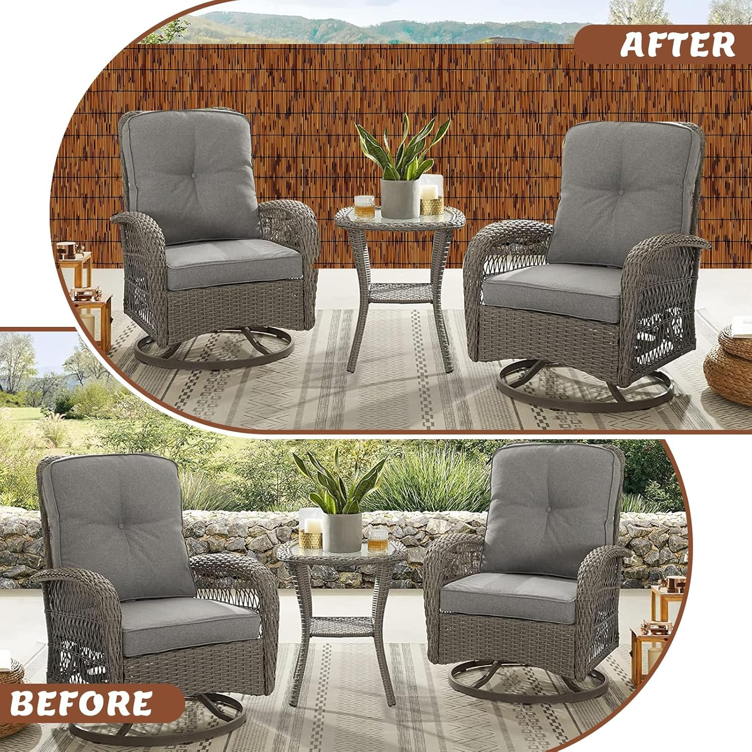 • 【Bamboo Reed Fence Ideas】If you are looking for a little privacy on your balcony, this is the way to go! The intricate patterns of the reeds fencing create an eye-catching visual display, while the organic texture adds depth and character to your outdoor haven. This private bamboo reed fencing effortlessly combines the elegance of nature with the practicality of shielding your space from prying eyes
