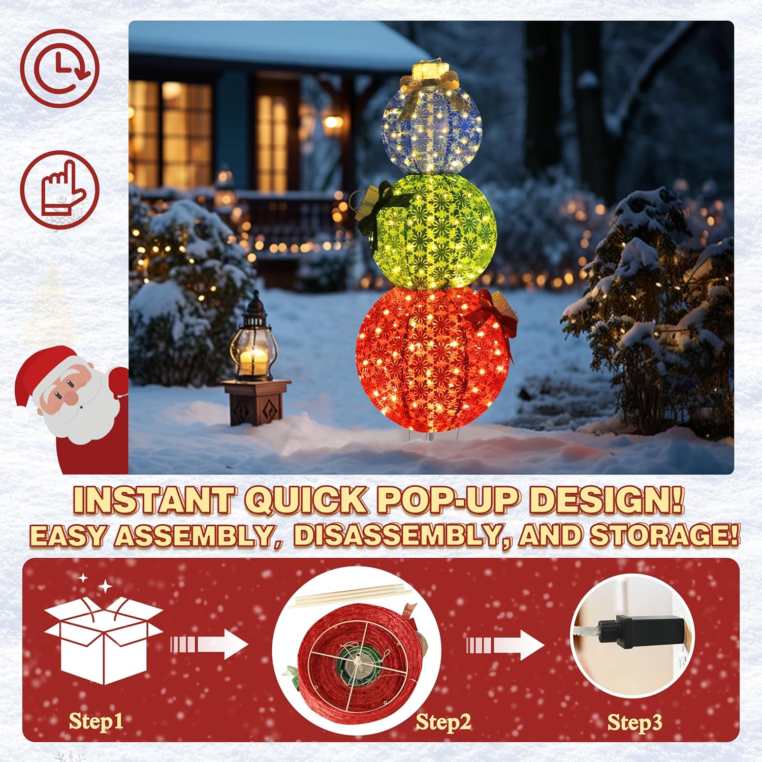 5FT Lighted Pop Up Stackable Ornaments for Christmas Decoration, 3D Pre-Lit Decor with 210 LED Lights with Easy Pop-Up Design, Freestanding Glittered Holiday Display for Outdoor, Indoor