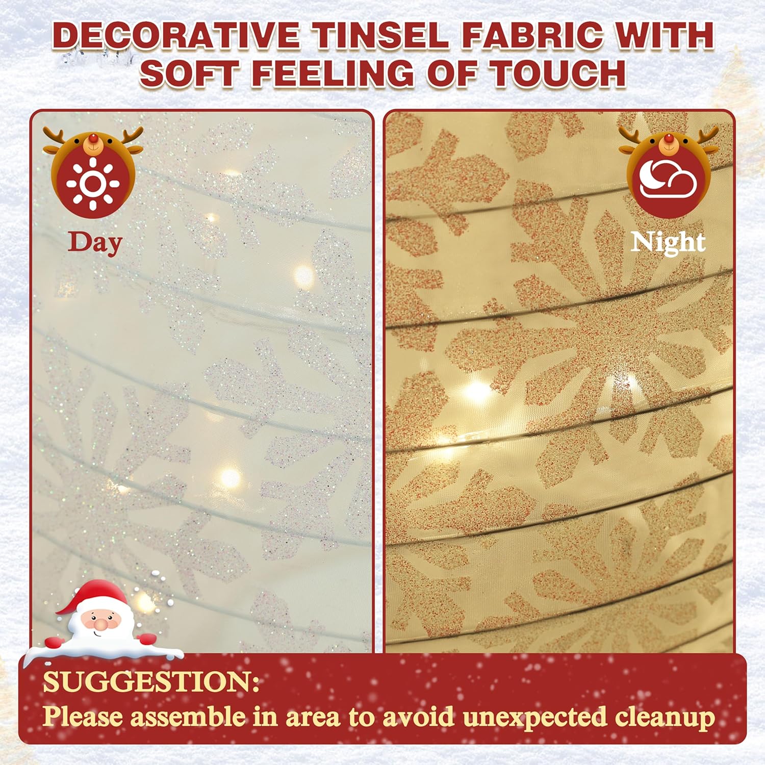 • Premium Quality: Our lighted Christmas decoration is made of a high quality powder-coated steel frame which ensures the long service life. It is durable enough for you to use year over year and it wouldn’t break easily. Decorative tinsel fabric gives you soft feeling while touching it