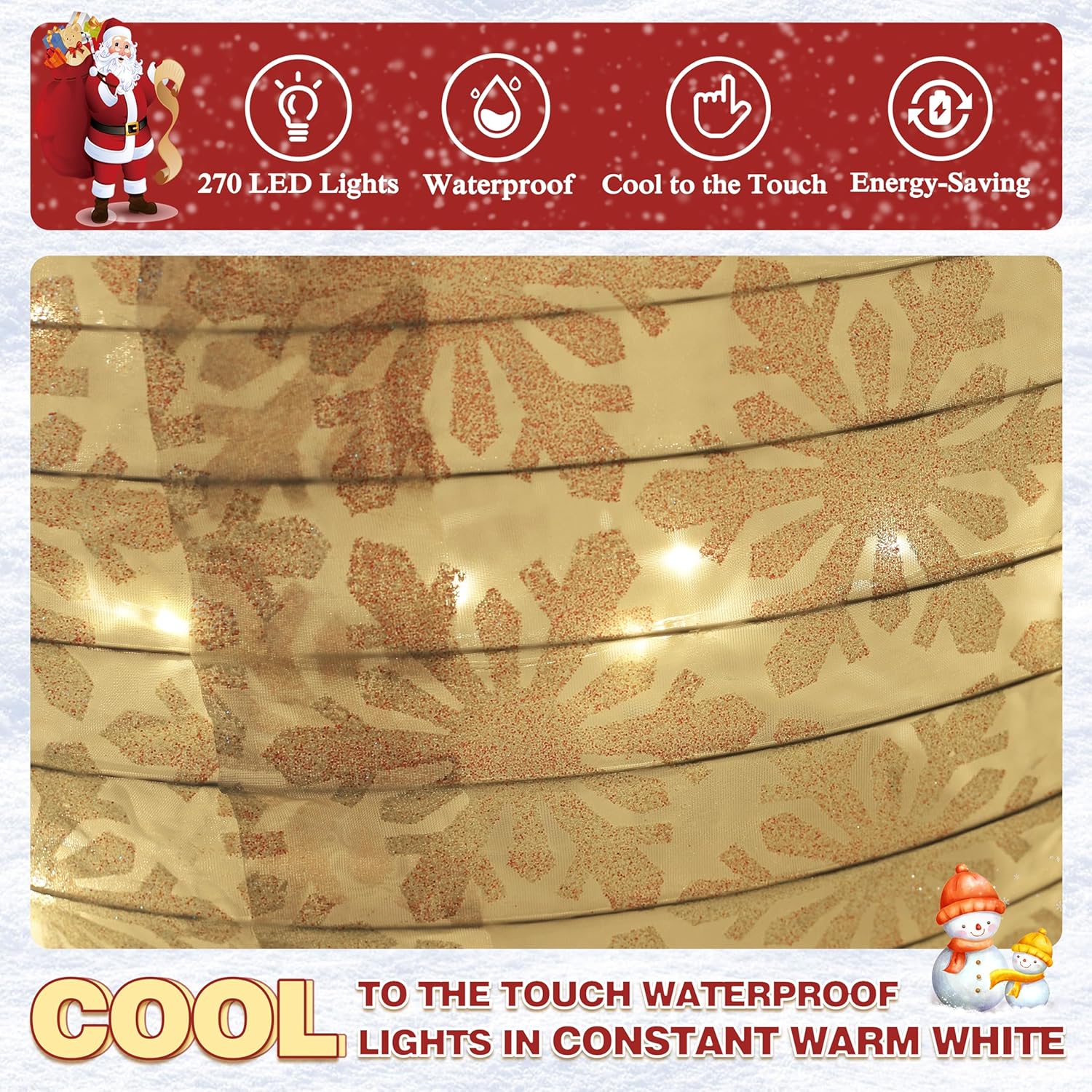 • Weather-Friendly Design: This freestanding holiday display is equipped with water-resistant cord and lights, the light bulb is waterproof and snow proof, so you don't have to worry about safety issues. Although, it has 270 LED lights, it’s still energy-saving. Besides, pre-strung fairy lights remain cool to the touch in constant warm white