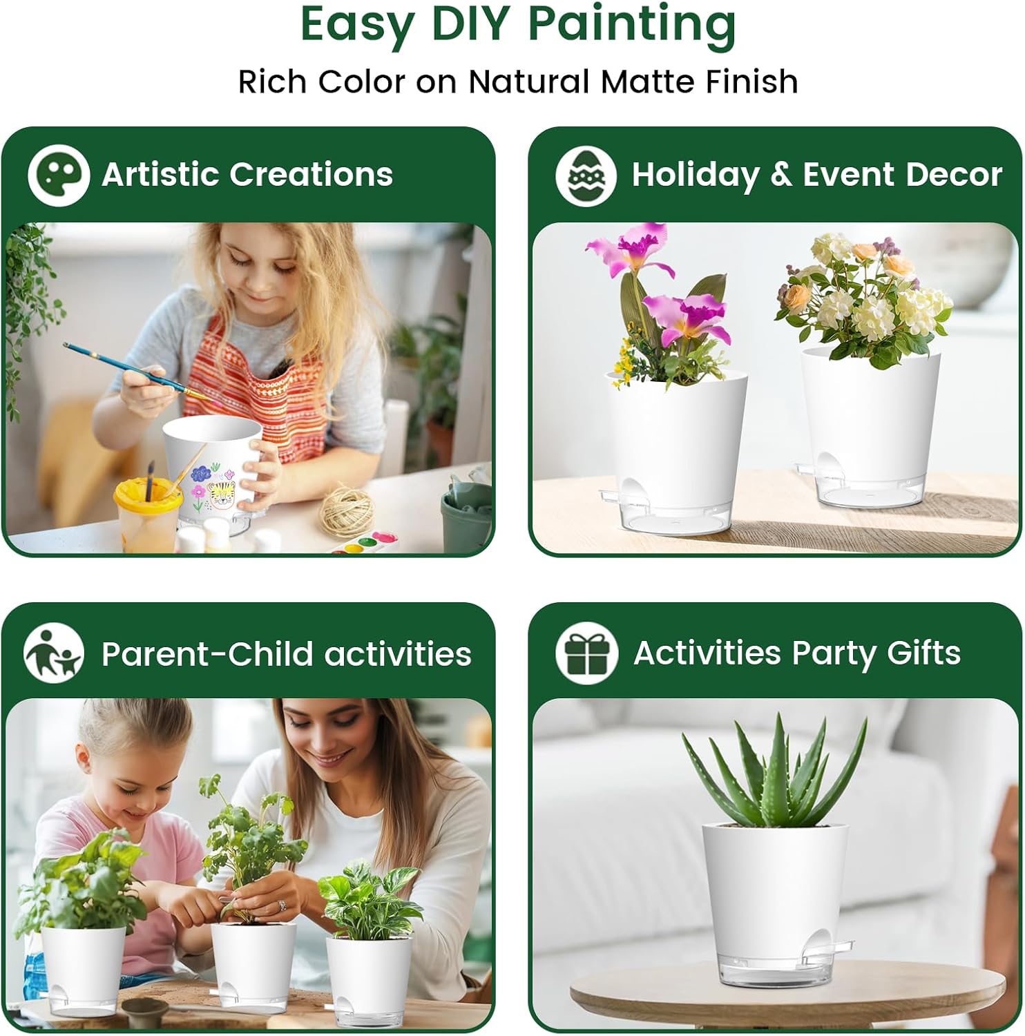 • 【Multi-Purpose and DIY Friendly】These self watering planters for indoor plants are perfect for growing cacti, succulents, aloe vera, african violets, herbs, and snake plants. Spark creativity! Color or DIY these self-watering planters- a fun project to grow plants & memories with kids.