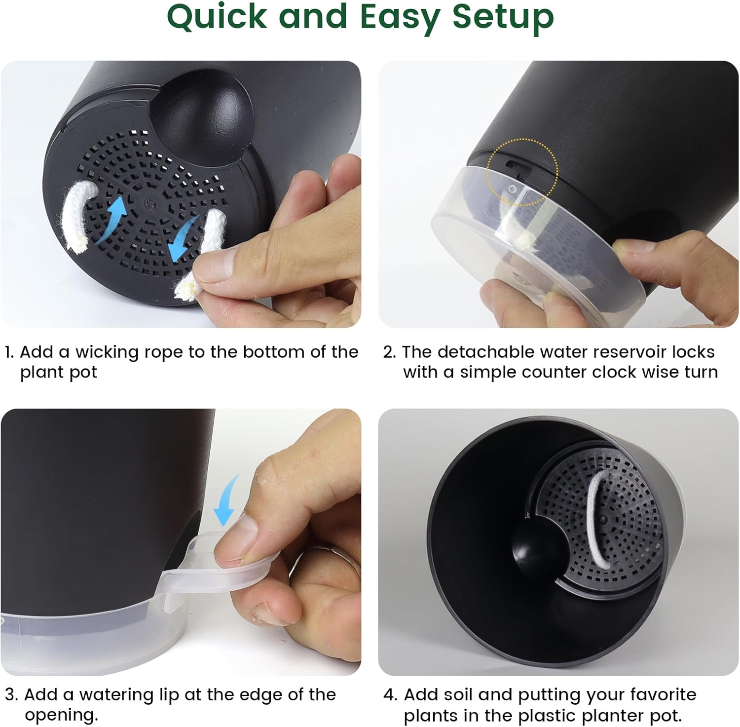 • 【Durability, Lightweight & Sturdy】These flower pots self watering are made of high-quality plastic, thick wall for solid sturdiness while lightweight, resistant to sunlight. Easy to move and rearrange, these self watering pots for indoor plants let you effortlessly create stylish plant displays in your office or home