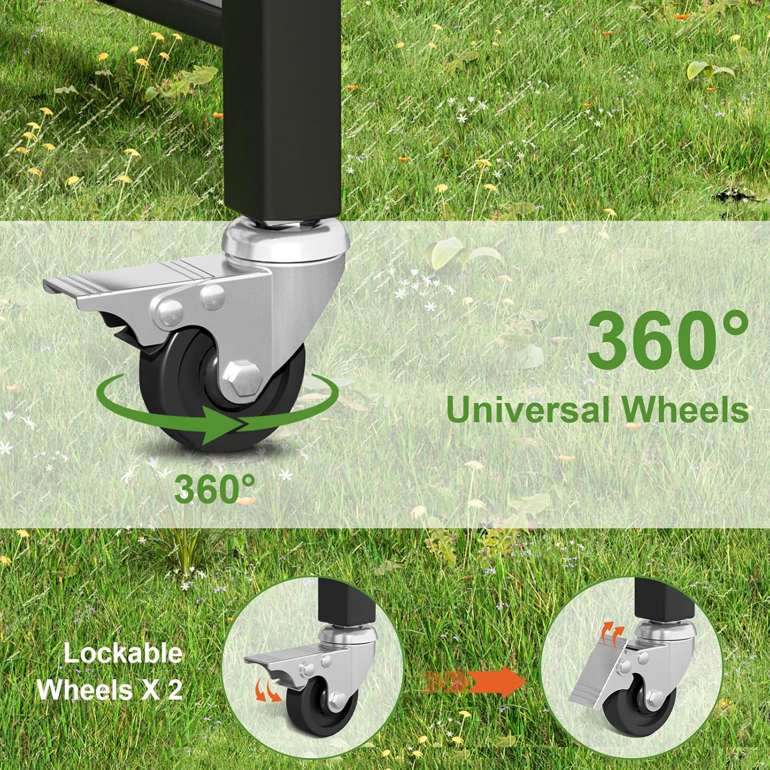 • Easy to move: Equipped with 2 large wheels and 1 ergonomic handle, it offers flexible movement for traversing uneven rocky and grass terrain. Two small wheels with brakes allow you to securely place it anywhere.