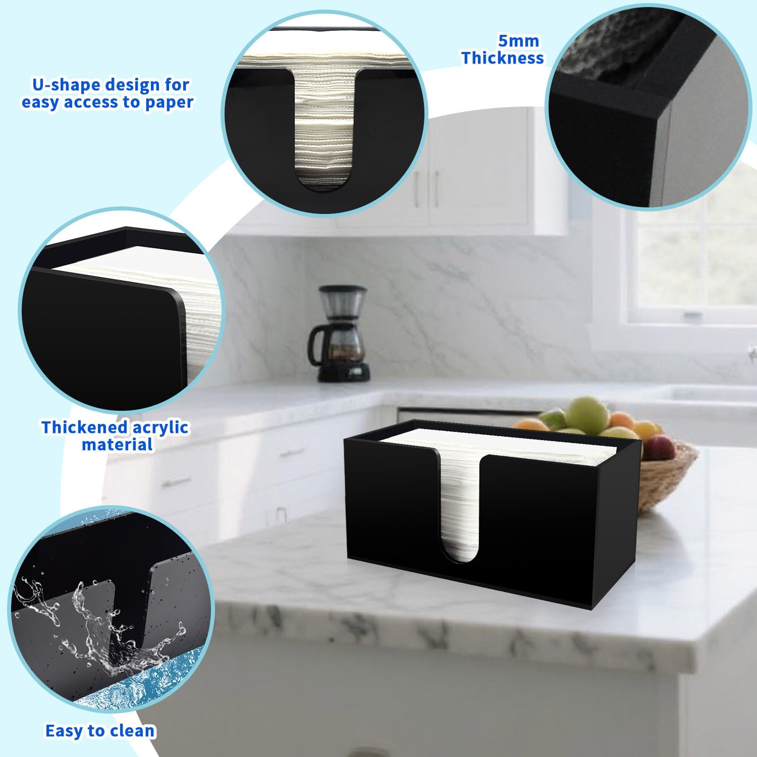 Paper Towel Holder for Countertop,Black Acrylic Napkin Dispenser-Multifold/C-Fold/Z-Fold Trifold Paper Towel Dispenser for Bathroom Kitchen Restaurant Toilet - Durable 5mm Thick(2)