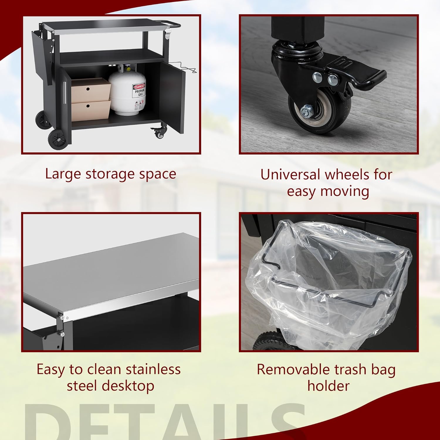 • Versatile Grill Tables for Outside: More than just a grill cart, this versatile unit doubles as an outdoor bar, prep table, mobile kitchen island, and more. Movable Worktable can be applied to patio, garden, kitchen. It will be a great addition to your family.