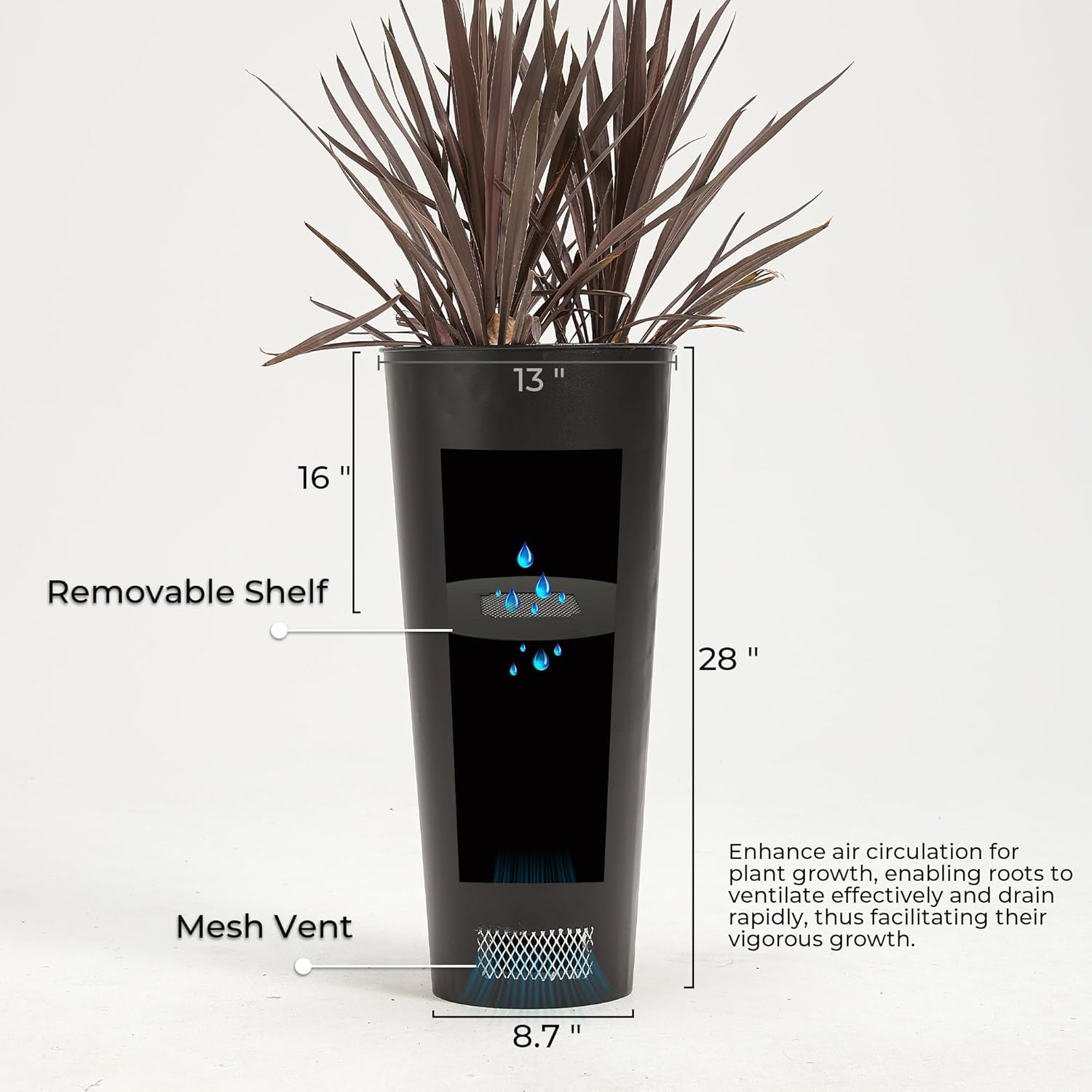 • Heavy-Duty Steel Planters for Outdoor Plants: 2-pack 28"H steel planters with 13" top diameter—built for decade-long outdoor use. High-quality steel resists rust, UV damage, and cracking in cold climates.