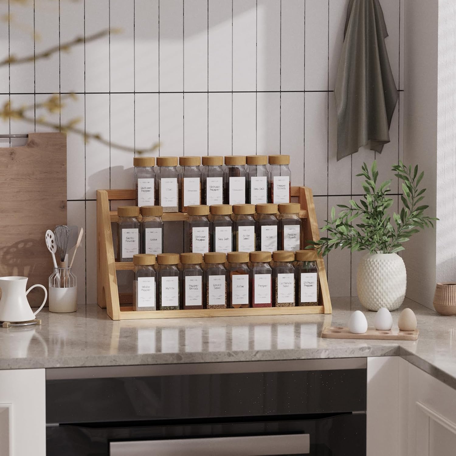 Bamboo Spice Rack Organizer -3-Tier Spice Rack for Countertop,Cabinet Spice Rack Organizer for 27 Spice Jars(4oz),Step Shelf (yellow)