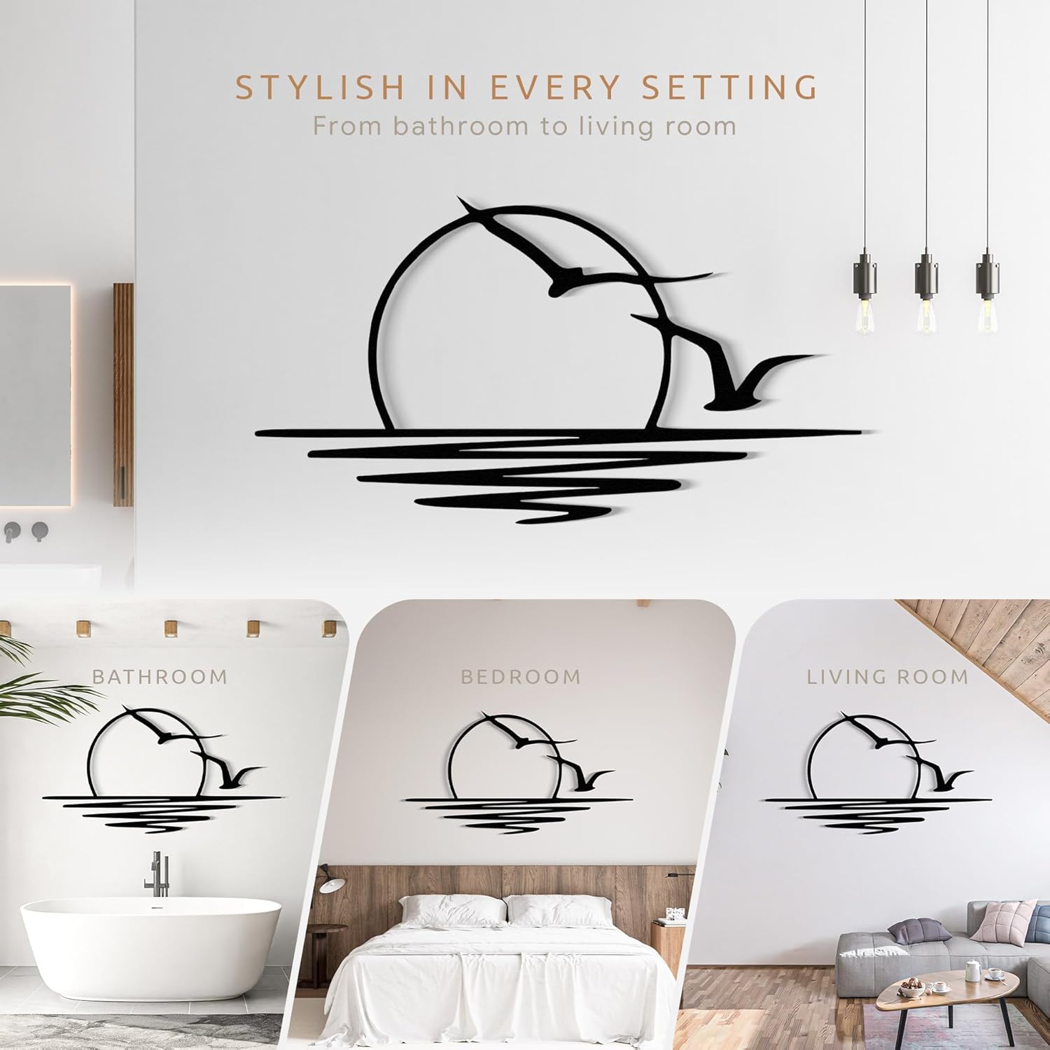 Wita Home Sunset with Seagulls Metal Wall Mounted Art, Handcrafted Metal Home Decor with Static Powder Coating, Eye-Catching Addition to Living Room Decor, Modern Beach Decor for Indoor and Outdoor Spaces, Perfect Housewarming Gift (56 x 28 inches)