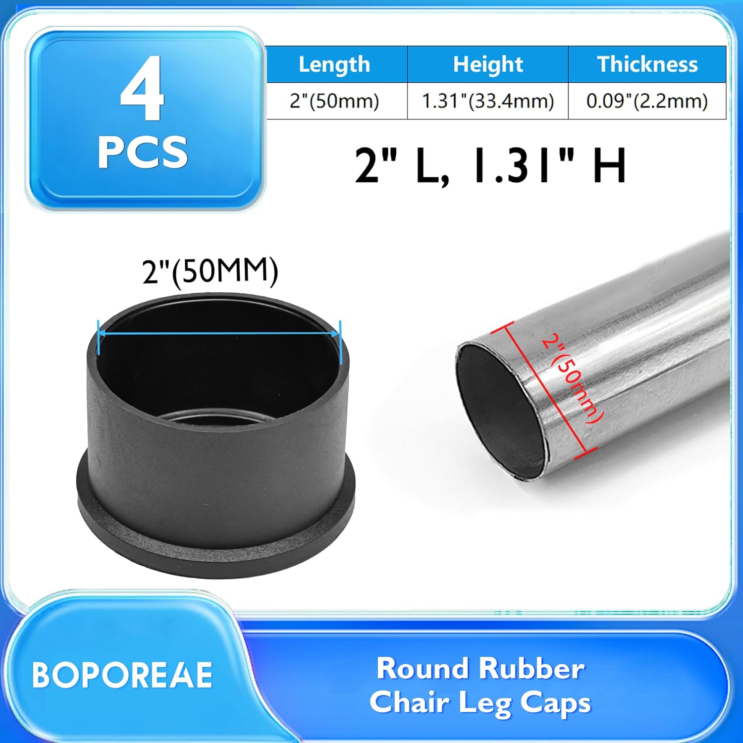 • Dimension and Quantity: 4 black round chair leg floor protectors, suitable for 2" OD round chair legs; We offer different size options,including 1"- 3" round chair feet, allowing you to find the perfect fit for your specific needs (Please confirm that you are measuring the outside, not the hole)