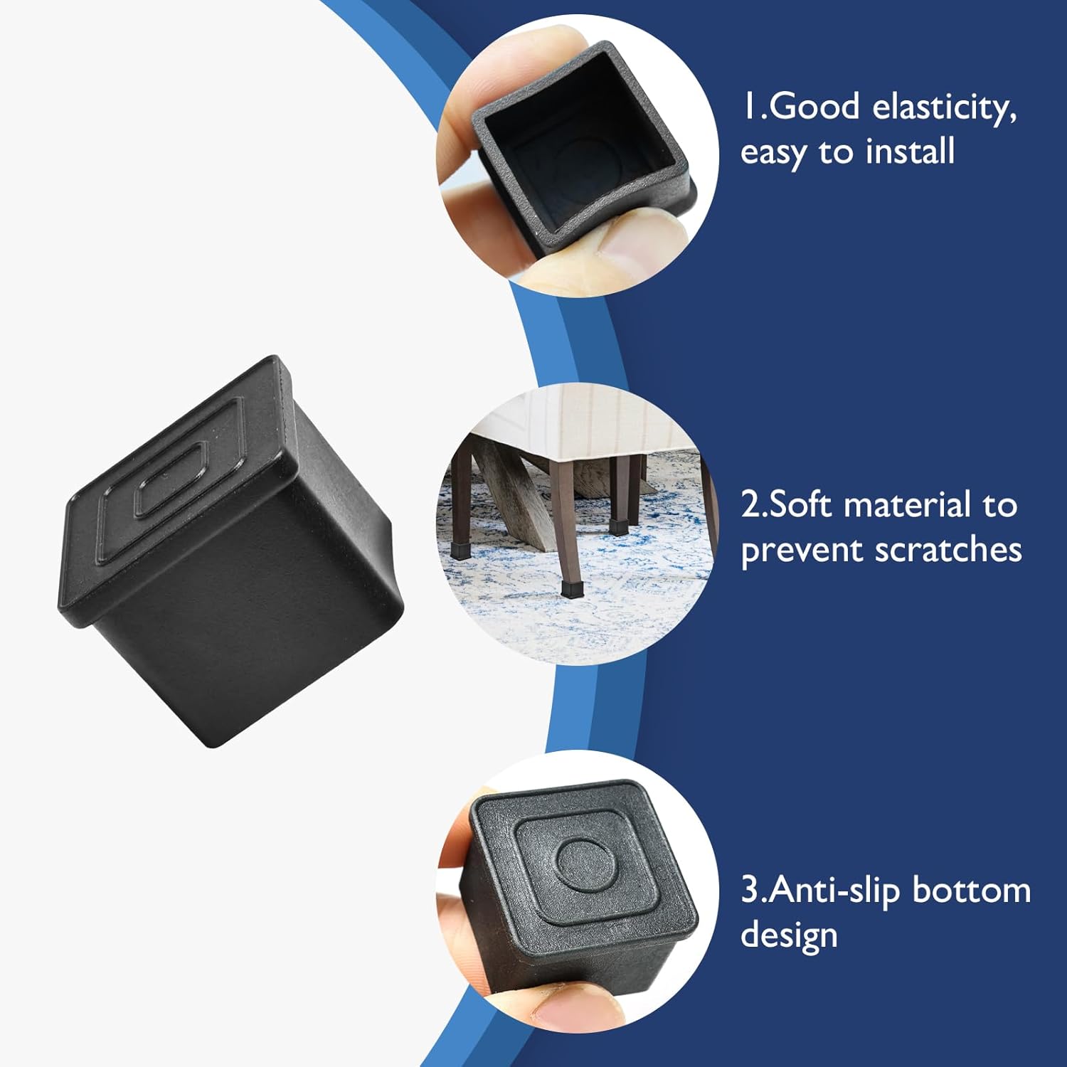 • Wide Applications: Suitable for various size furniture feet, our chair feet caps can be used on kitchen chairs, tables, dining room chairs, sofas, couches, bar stools, beds, dressers, patio chairs, metal bistro chairs, desk chairs, any square opening; They provide a neat and safe finish to tube ends
