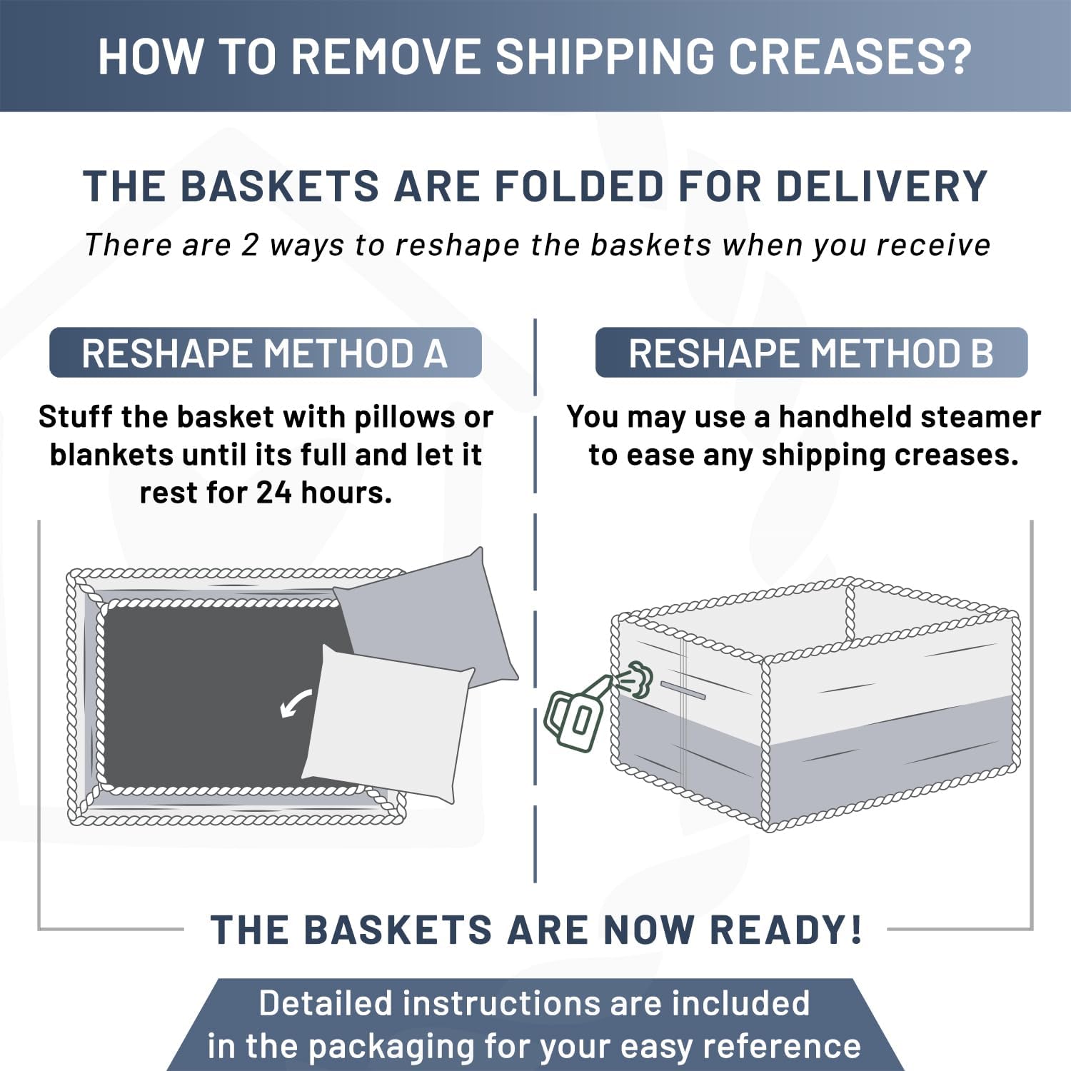 • Say goodbye to wrinkly, floppy baskets! Ours stays firm and structured—no permanent creases. Made with quality rope and a unique folding method, it’s easy to shape with the included instructions. Unlike others, it keeps its form beautifully.