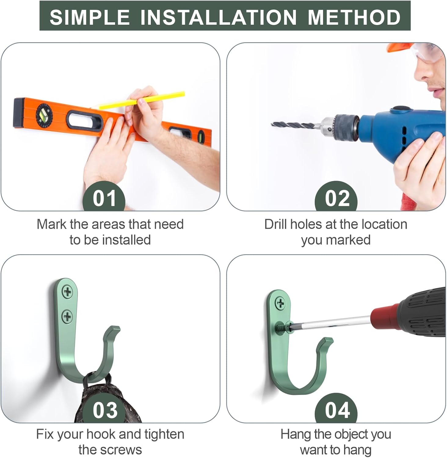 • Simple Design: Each hook features a single prong and comes with 40 pieces of screws for easy installation. Made from durable materials, these wall hooks are built to last and can support heavy items. Upgrade your home or office with these practical and stylish wall hooks. Sleek black finish adds a touch of style to any decor