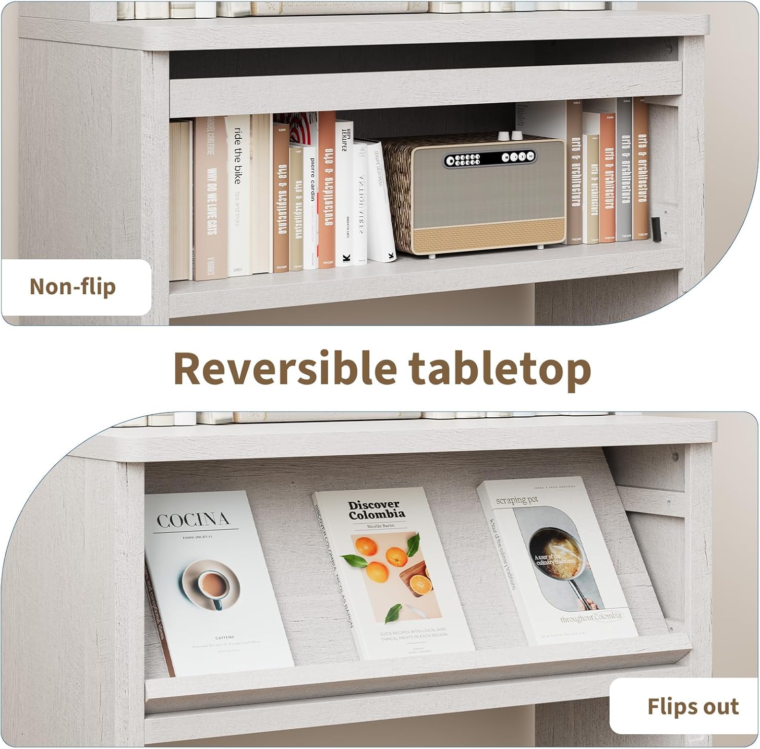 • 【Flip door design, a cabinet for multiple uses】 The fourth layer of the wooden book shelf with innovative reversible door layer, gently pushed out is a fashionable magazine rack, so that the beloved reading material within reach; closed in seconds into a standard bookshelf layer, does not take up space, at will to switch the reading and storage mode, practical and more obvious style.