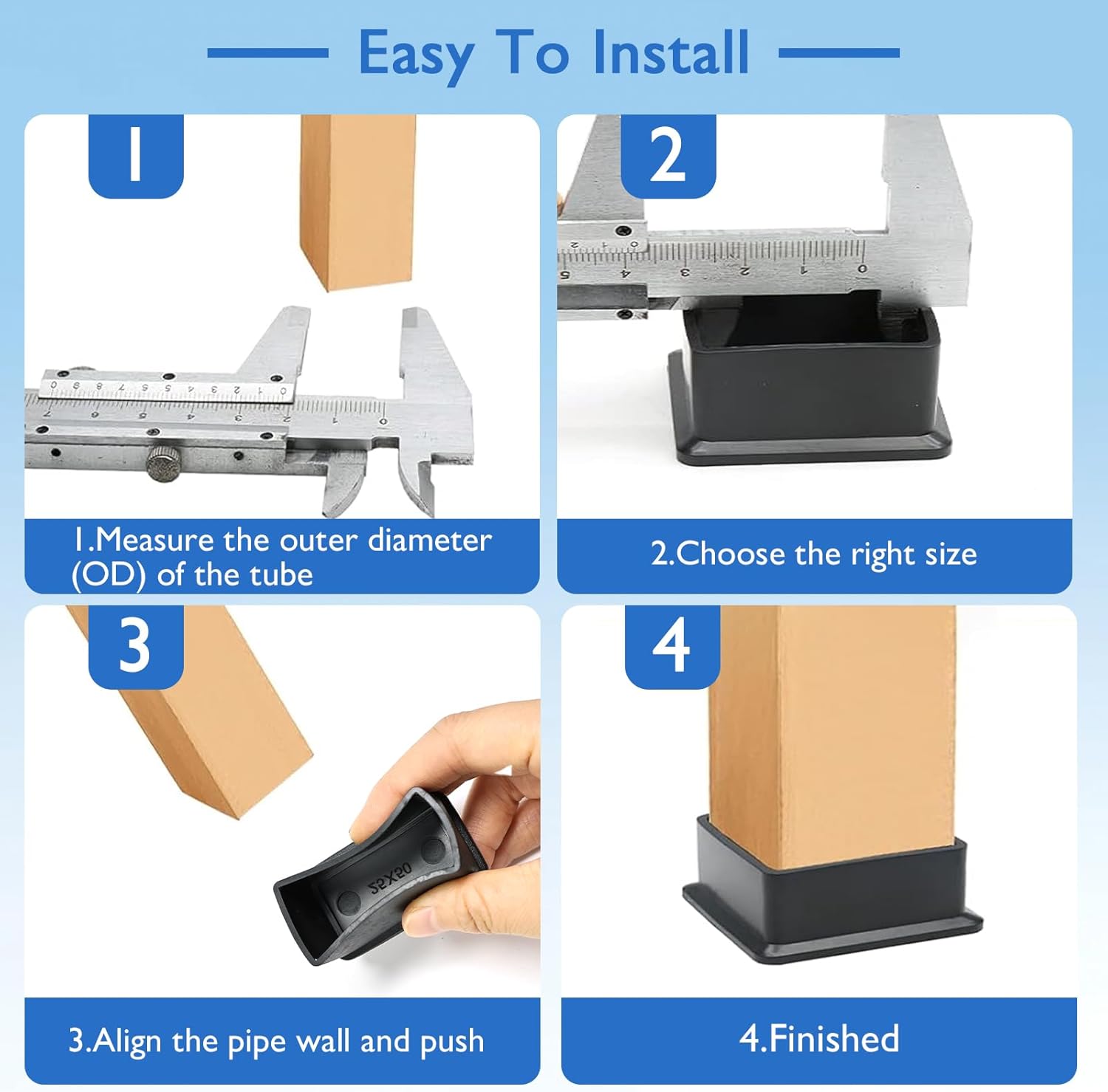 • Wide Applications: Suitable for various size furniture feet, our chair feet caps can be used on kitchen chairs, tables, dining room chairs, sofas, couches, bar stools, beds, dressers, patio chairs, metal bistro chairs, desk chairs, any rectangular opening; They provide a neat and safe finish to tube ends