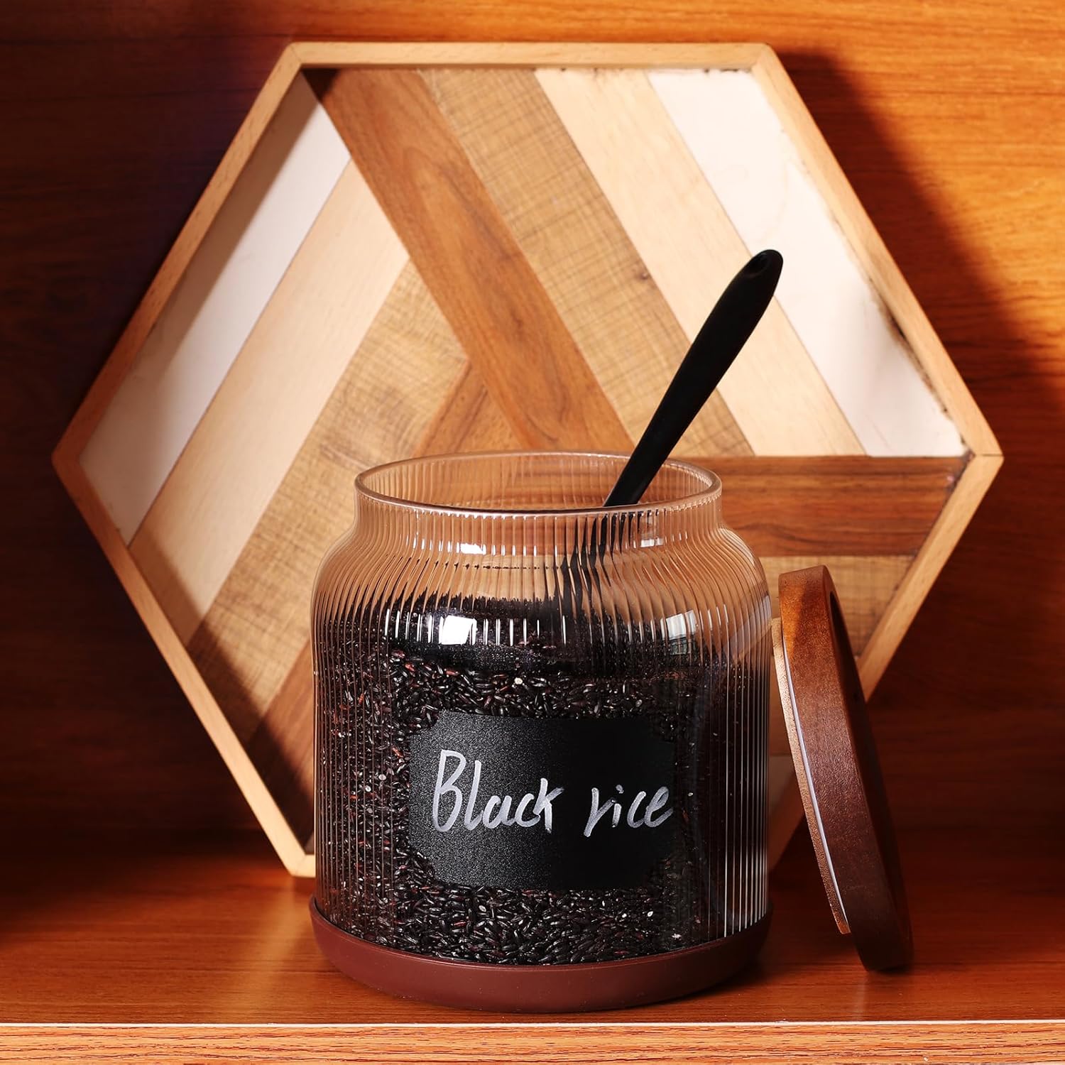 • Complete Set with Accessories**: Includes a silicone ring spoon, black labels, and a non-slip silicone base, enhancing functionality and organization in your storage spaces.