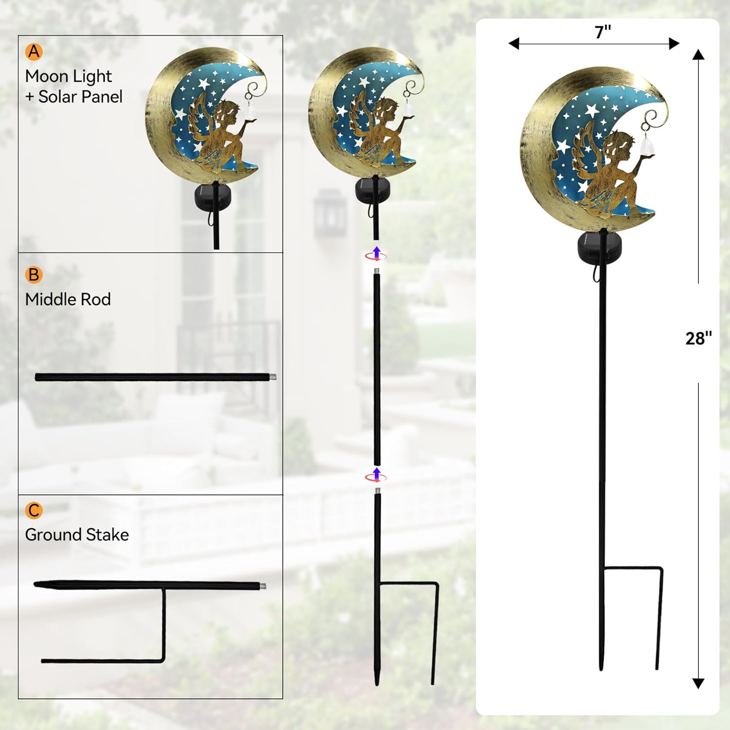 • Sturdy & Durable: The moon path light crafted from thickened, anti-rust metal and coated with a hand-painted rustic gold and blue finish, this garden light is made to withstand rain, wind, and sun. Perfect for year-round outdoor display