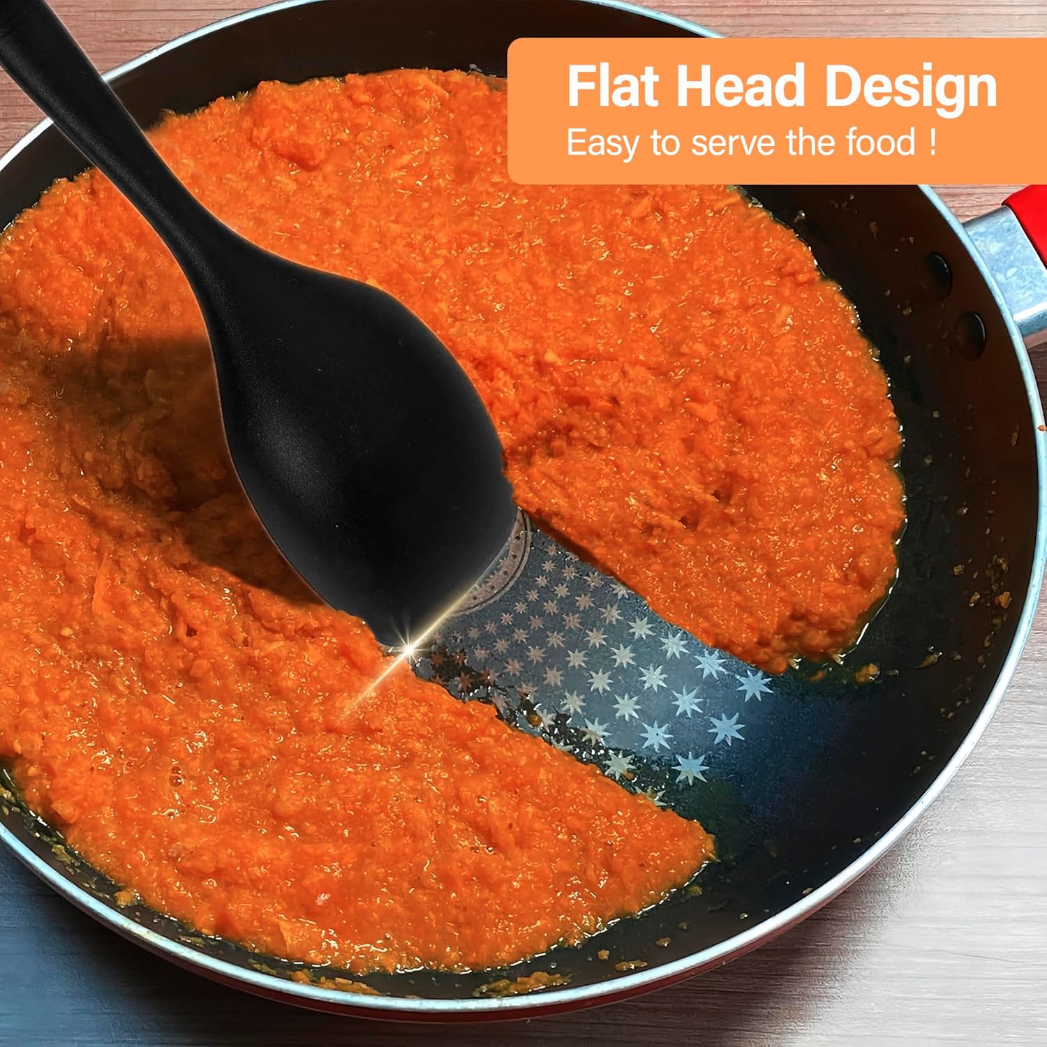 • 🍳【Anti-Scratch & Premium Silicone】This large silicone cooking spoon set are made of top grade 100% BPA-free silicone material. It also comes with a non-stick surface, which won't scratch your non-stick cookware.The heat-resistant silicone withstands temperatures up to 480°F (250°C), ideal for searing meats, simmering sauces, or baking. Its flexible edge adapts to pan contours, while the slotted design drains excess oil or broth for healthier meals.