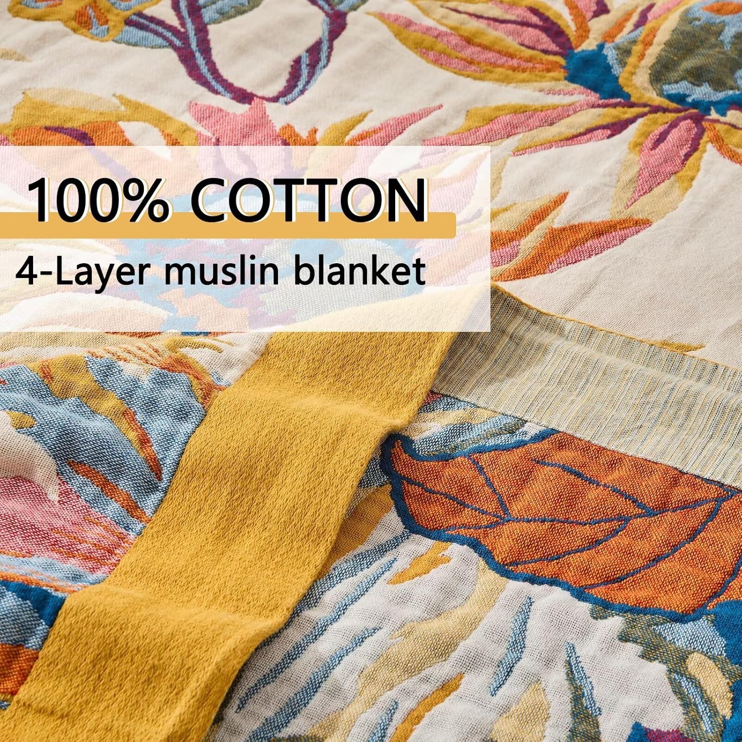 Boho Throw Blanket for Bed, Lightweight Reversible Quilt, Fall Cotton Blanket, Queen Size Boho Floral Bird Colorful Retro Quilt Ultra Soft Reversible Gauze Blanket for All Season, 80"x90"