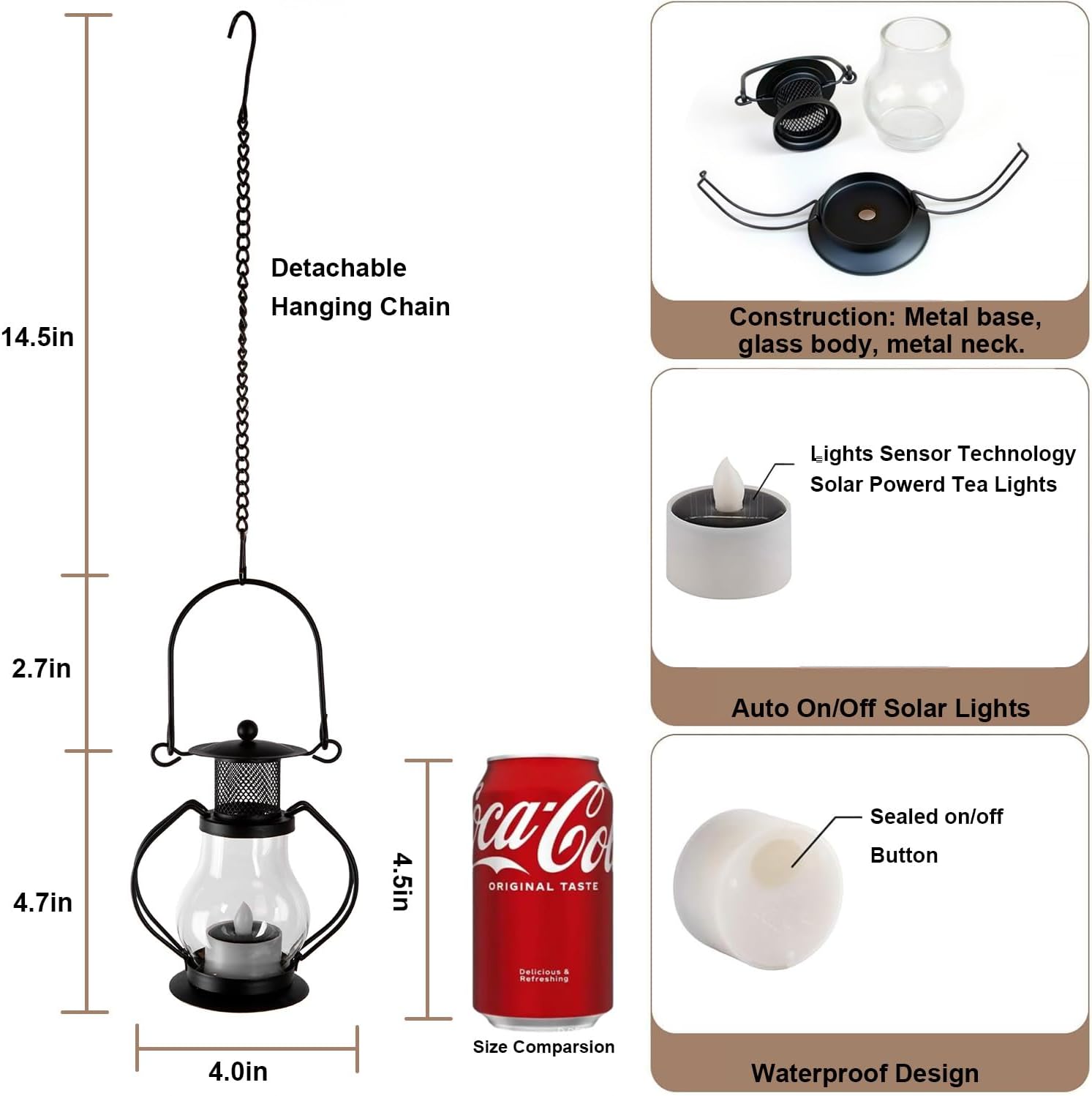 • 【Easy Hanging & 4-Pack Value】: Includes hanging hooks for effortless installation on fences, trees, patios, or gardens; 4 lanterns provide excellent coverage and decorative impact.