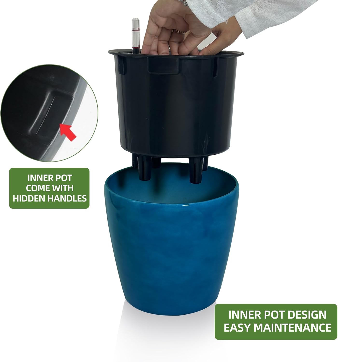 Dexceder 11x10 Inches Self Watering Planter Indoor Outdoor, Inner Pot Design, Thickened Table Flower Plant Pot with Water Level Indicator (Peacock Blue Gradient)
