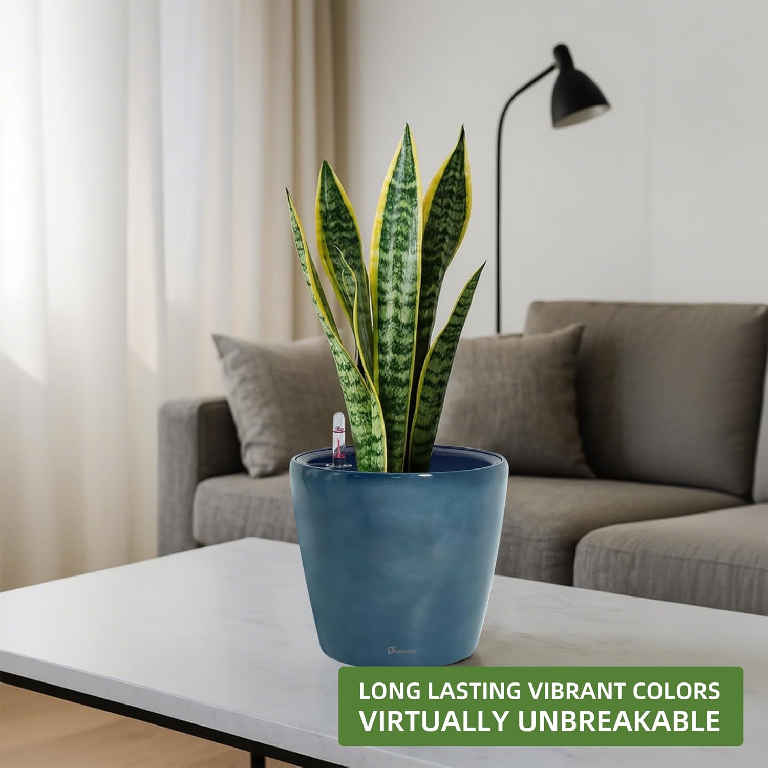 Dexceder 11x10 Inches Self Watering Planter Indoor Outdoor, Inner Pot Design, Thickened Table Flower Plant Pot with Water Level Indicator (Grayish Green Gradient)