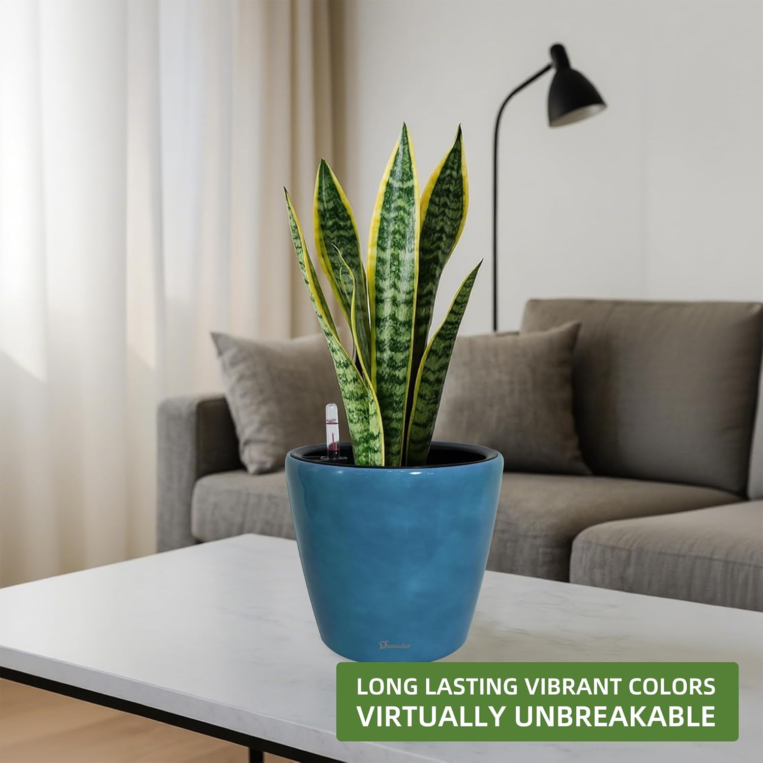 • SELF WATERING & NO MORE ROOT ROT - The smart unique sub-irrigation system is one of the most appealing aspects among all Dexceder planters. The easy-to-use separated integrated water reservoir or catcher- keeps your soil well aerated and automatic supplies plants with the right amount of ongoing moist air & nutrition for optimal growth. The insert indicator shows you the exact time to water again. The full water supply period can single-handedly last over 3 weeks based on different live plants