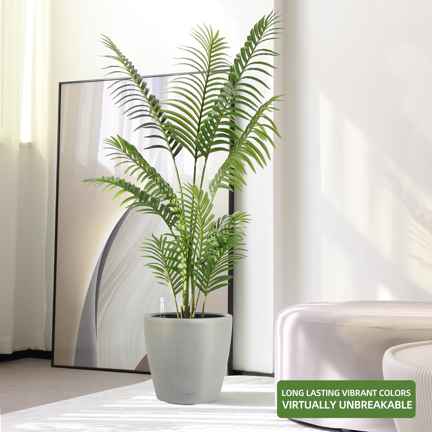 Dexceder 18x17 Self Watering Planter with Wheels Indoor Outdoor, Inner Pot Design, Thickened Large Floor Standing Flower Plant Pot with Water Level Indicator (Grey Gold Crackle)