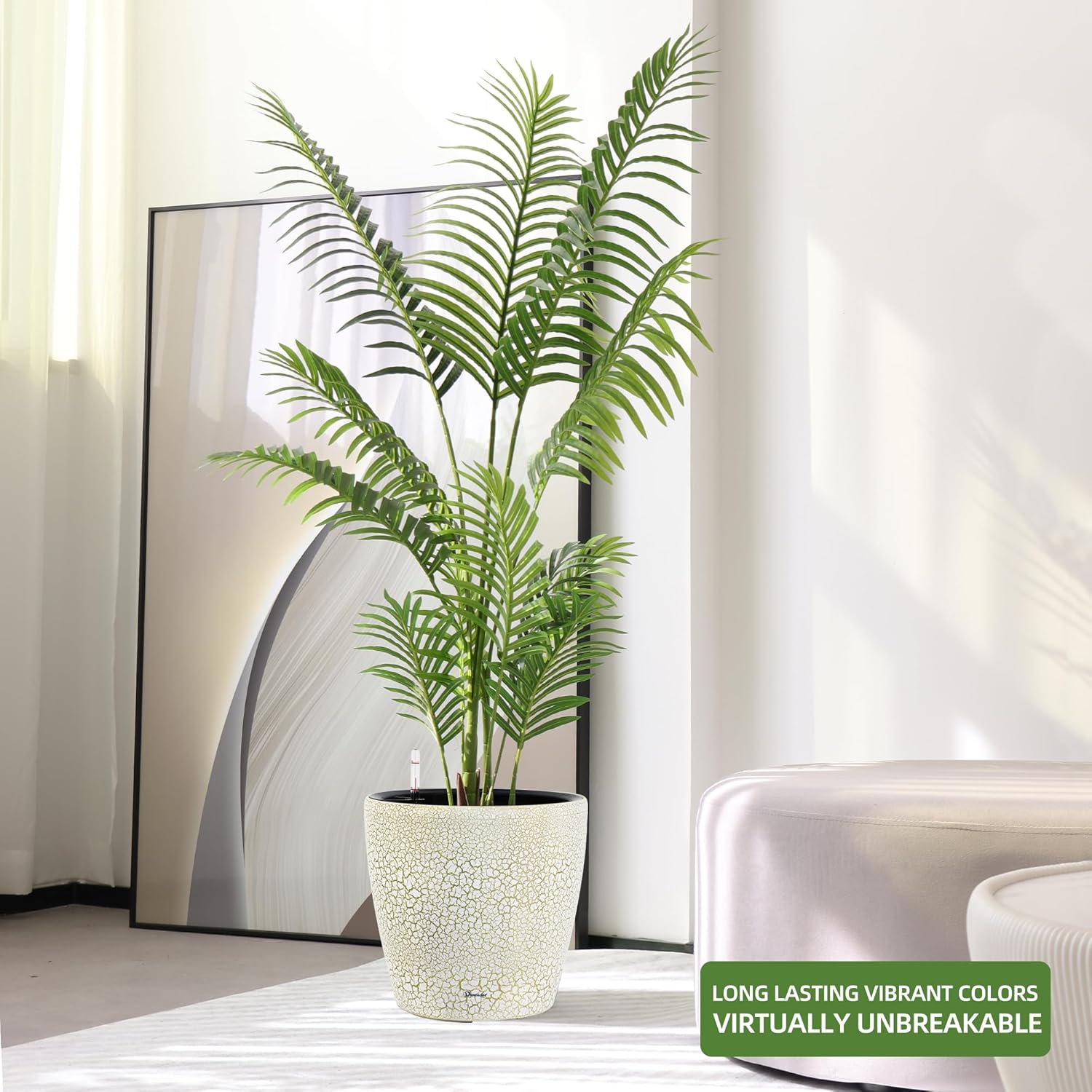 Dexceder 13x12 Self Watering Planter with Wheels Indoor Outdoor, Inner Pot Design, Thickened Large Floor Standing Flower Plant Pot with Water Level Indicator (White Gold Crackle)