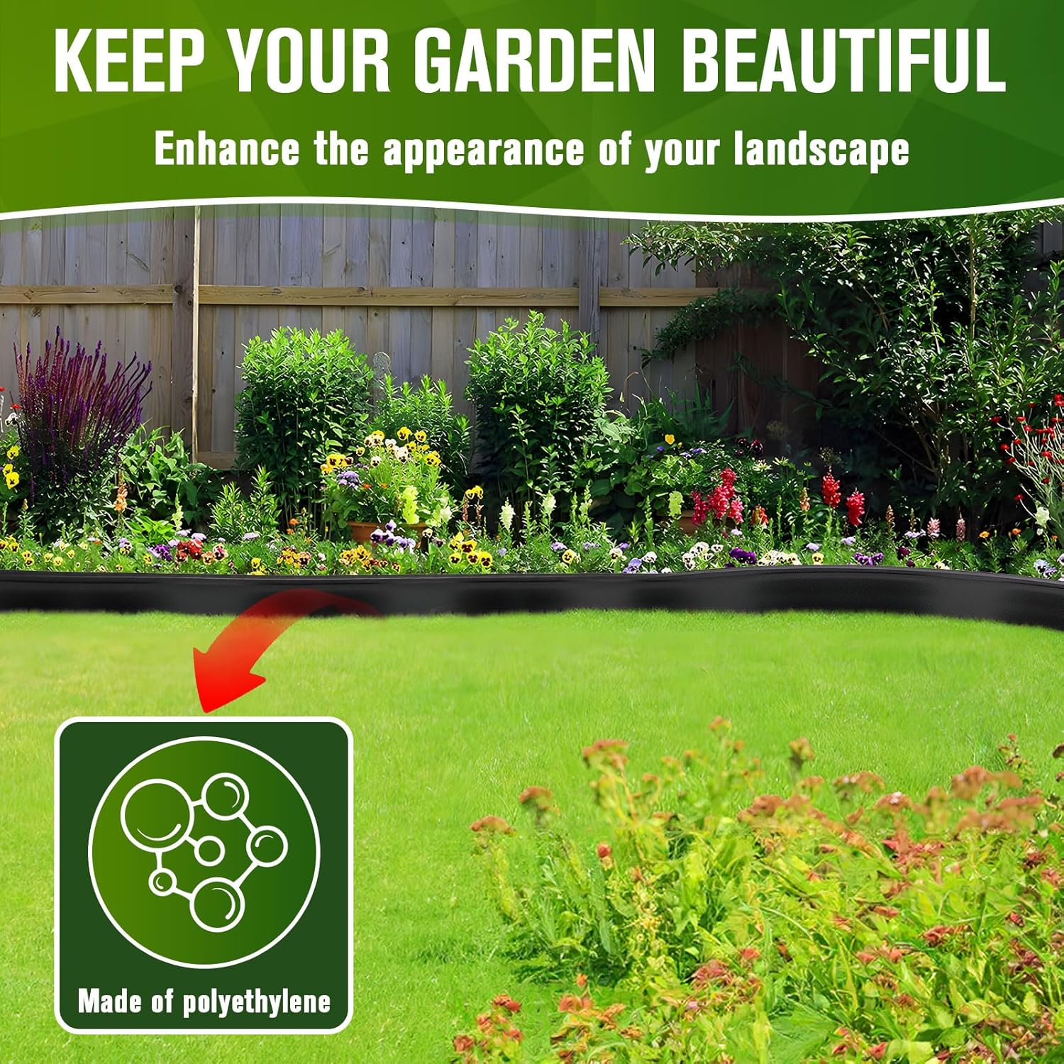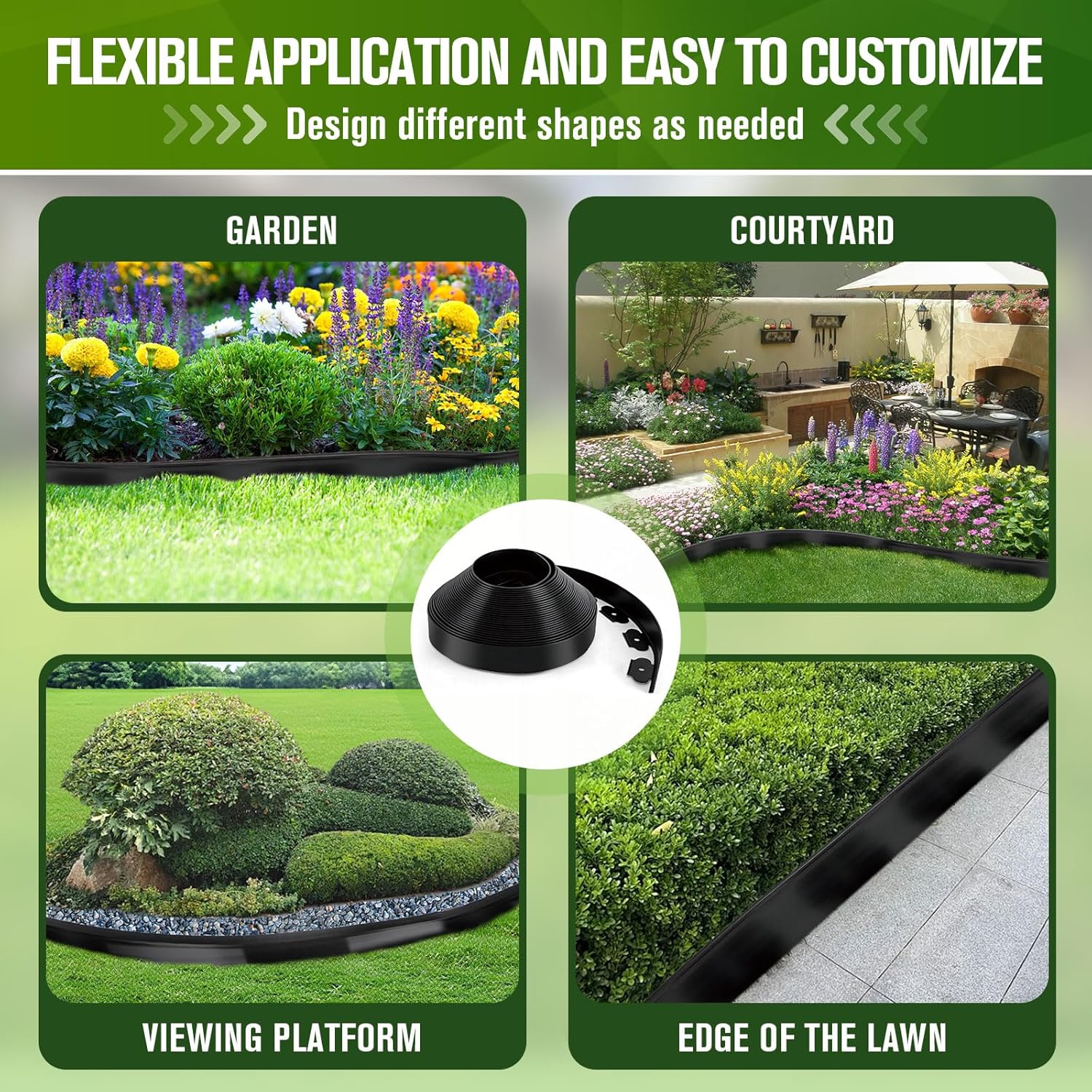 • High-Quality Garden Edging: This garden edging for landscaping is made of polyethylene (PE) is very strong and flexible, not prone to aging, reusable, longer service life, strong weather resistance make makes it an ideal for garden border edging, yard edging borders, flower bed edging, lawn border edging and flower bed edging borders
