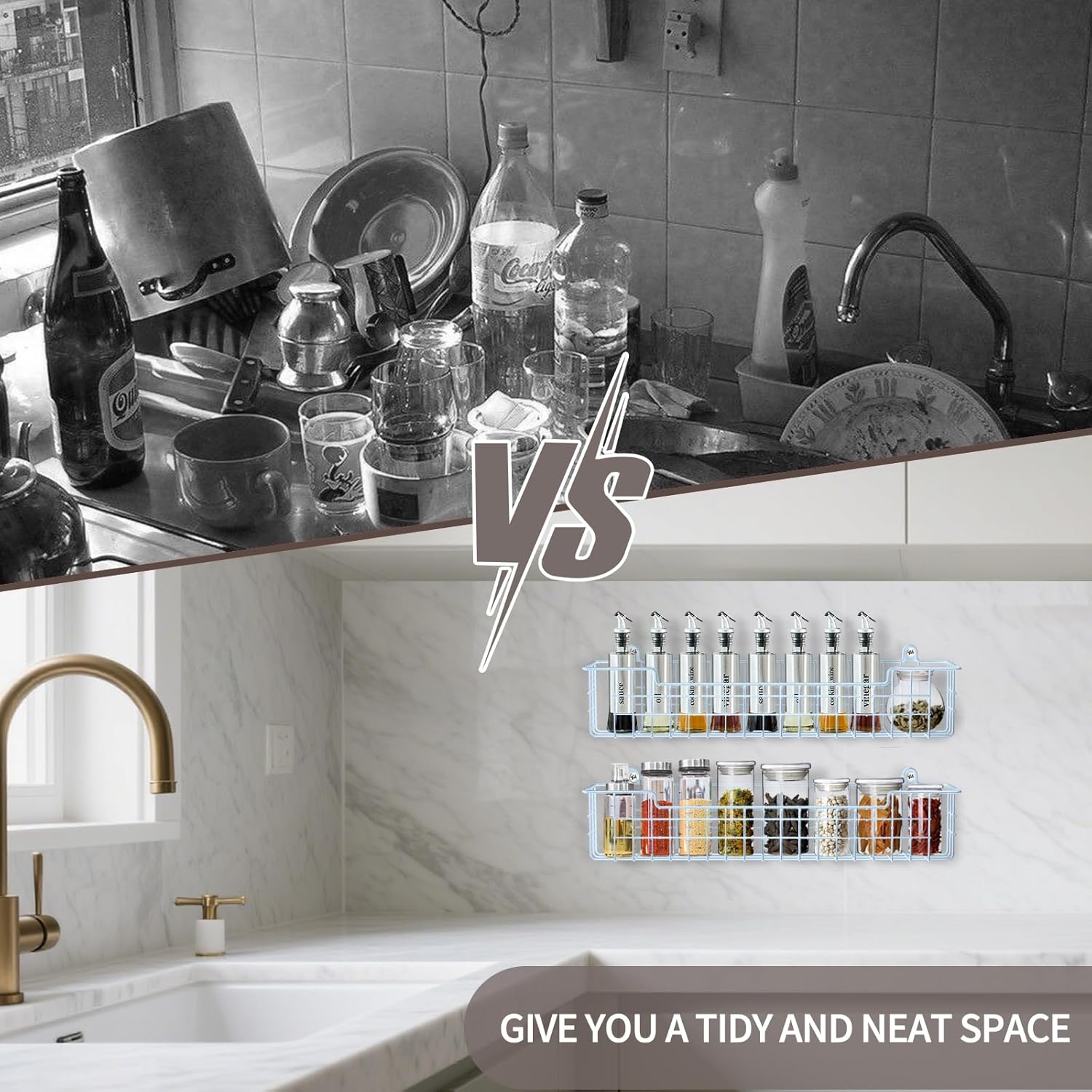 • Durable 2.0mm Metal Spice Rack: Heavy-duty steel construction with reinforced mesh design for superior strength. Supports heavy loads without bending or breaking